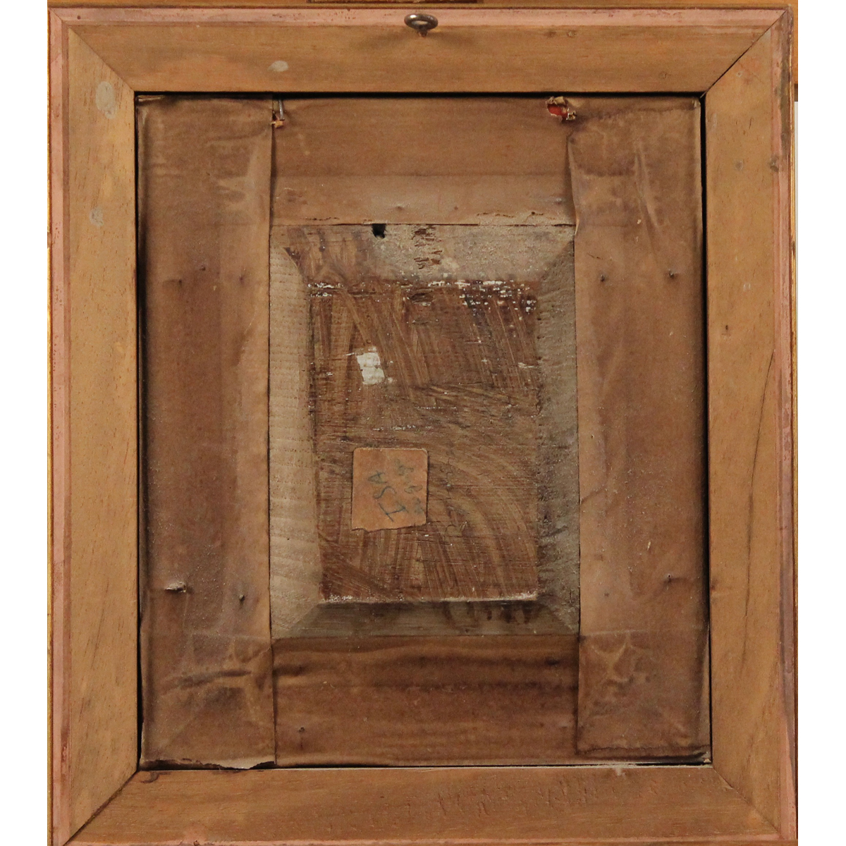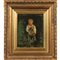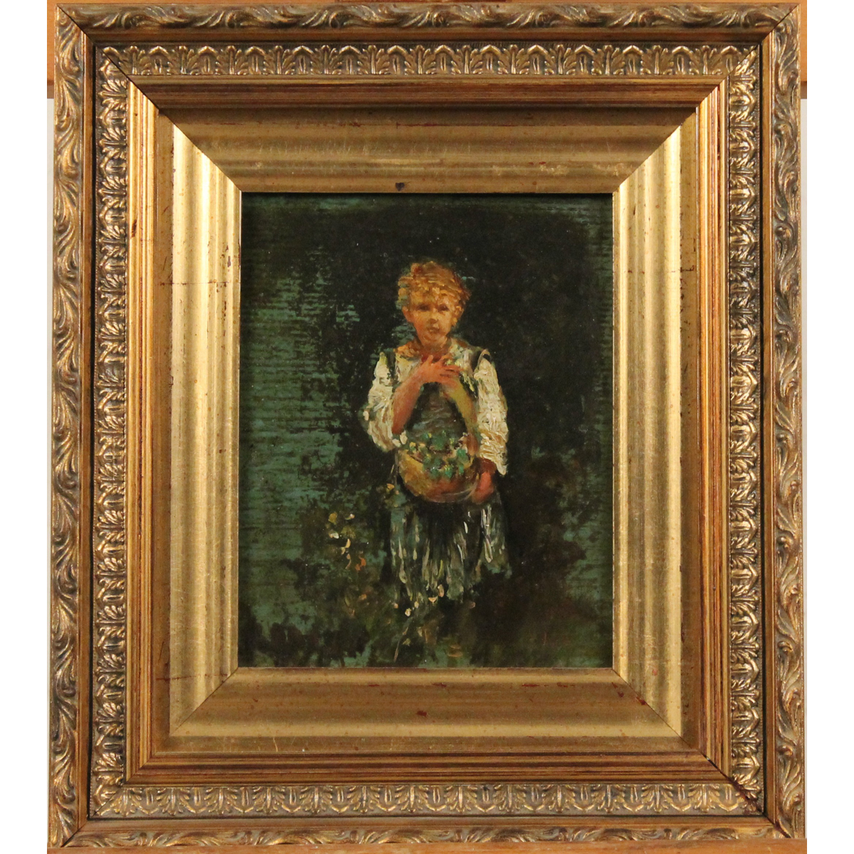 Pittore napoletano della fine del secolo XIX "Popolana con cesto" Dipinto ad olio su tavola in cornice in legno dorato. Cm 19x15