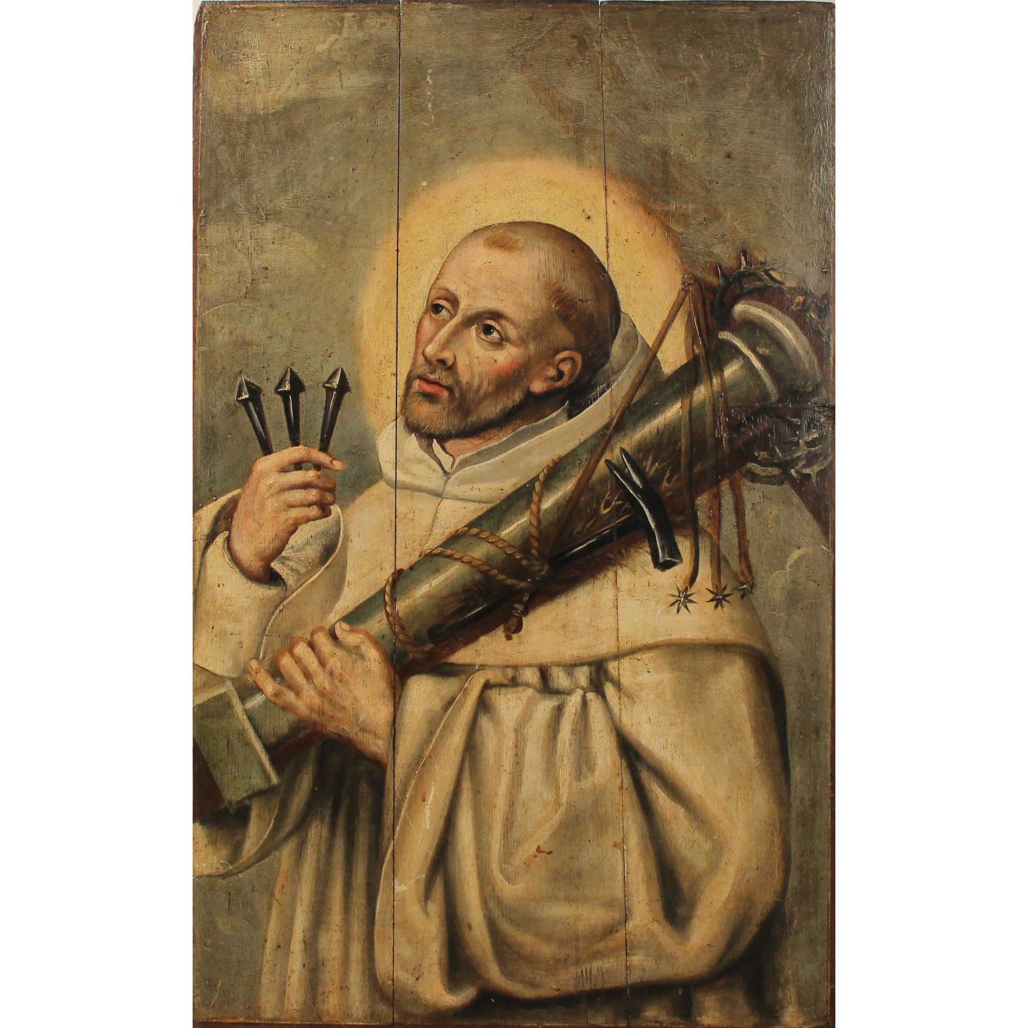 Scuola spagnola del secolo XVII "San Bernardo" Dipinto ad olio su tavola (danni alla tavola). Cm 94x58