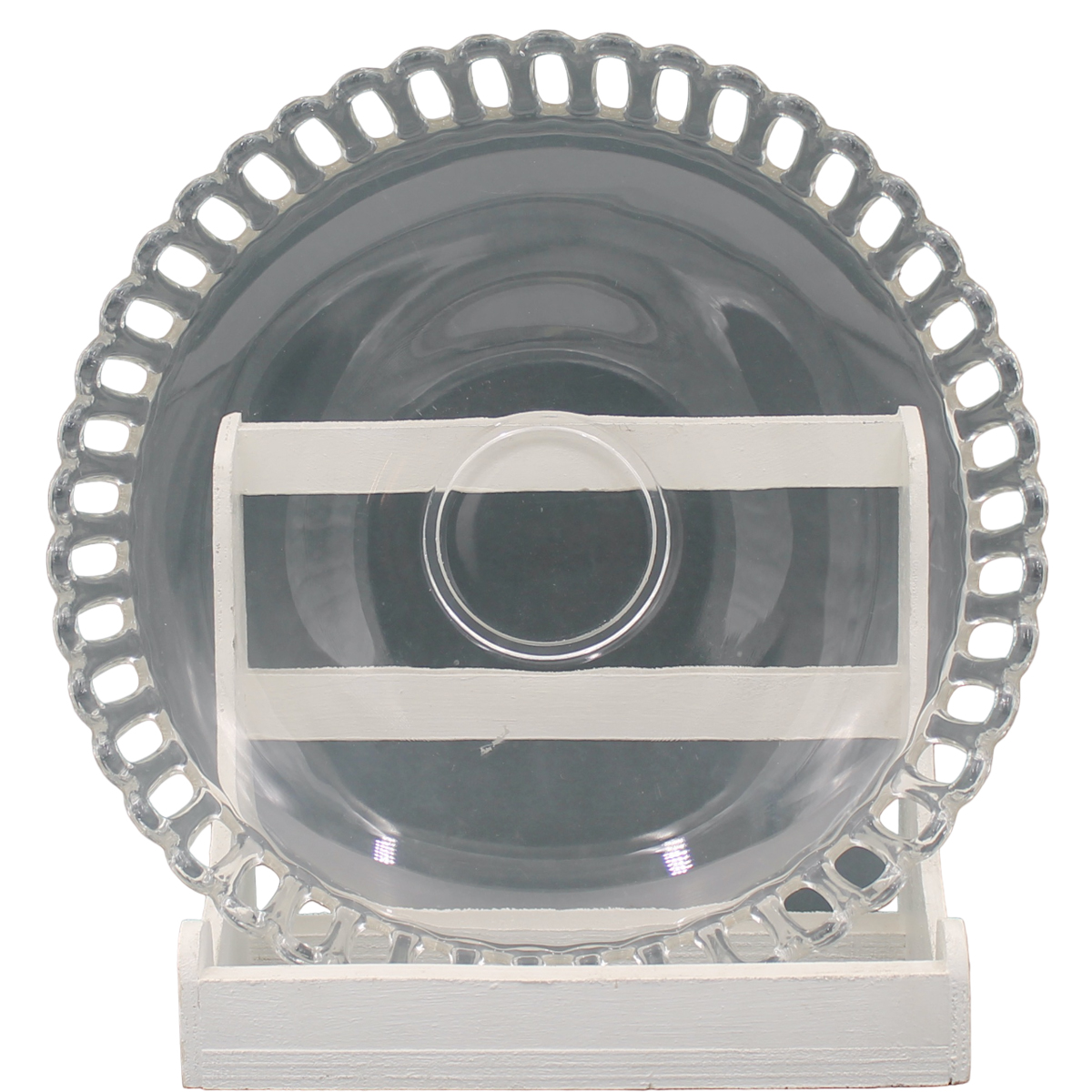 Piatto centrotavola Vetro soffiato con bordatura traforata. Secolo XX. Cm d 30