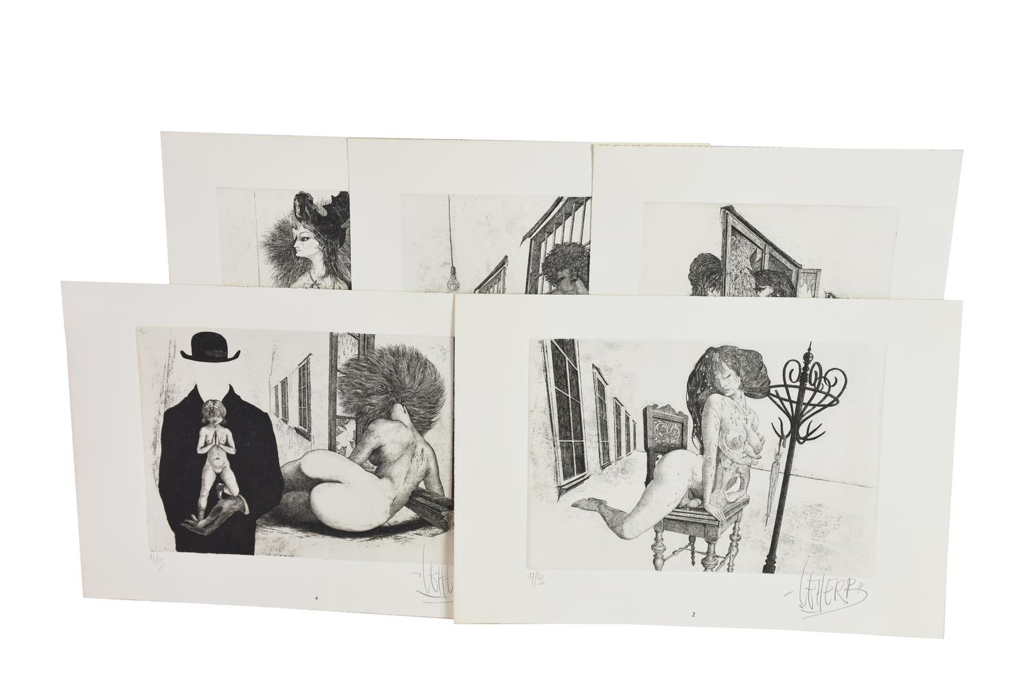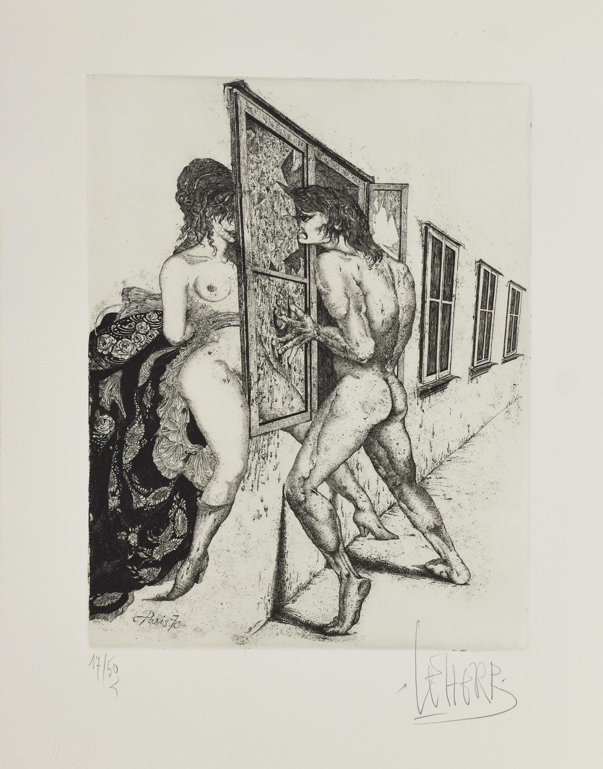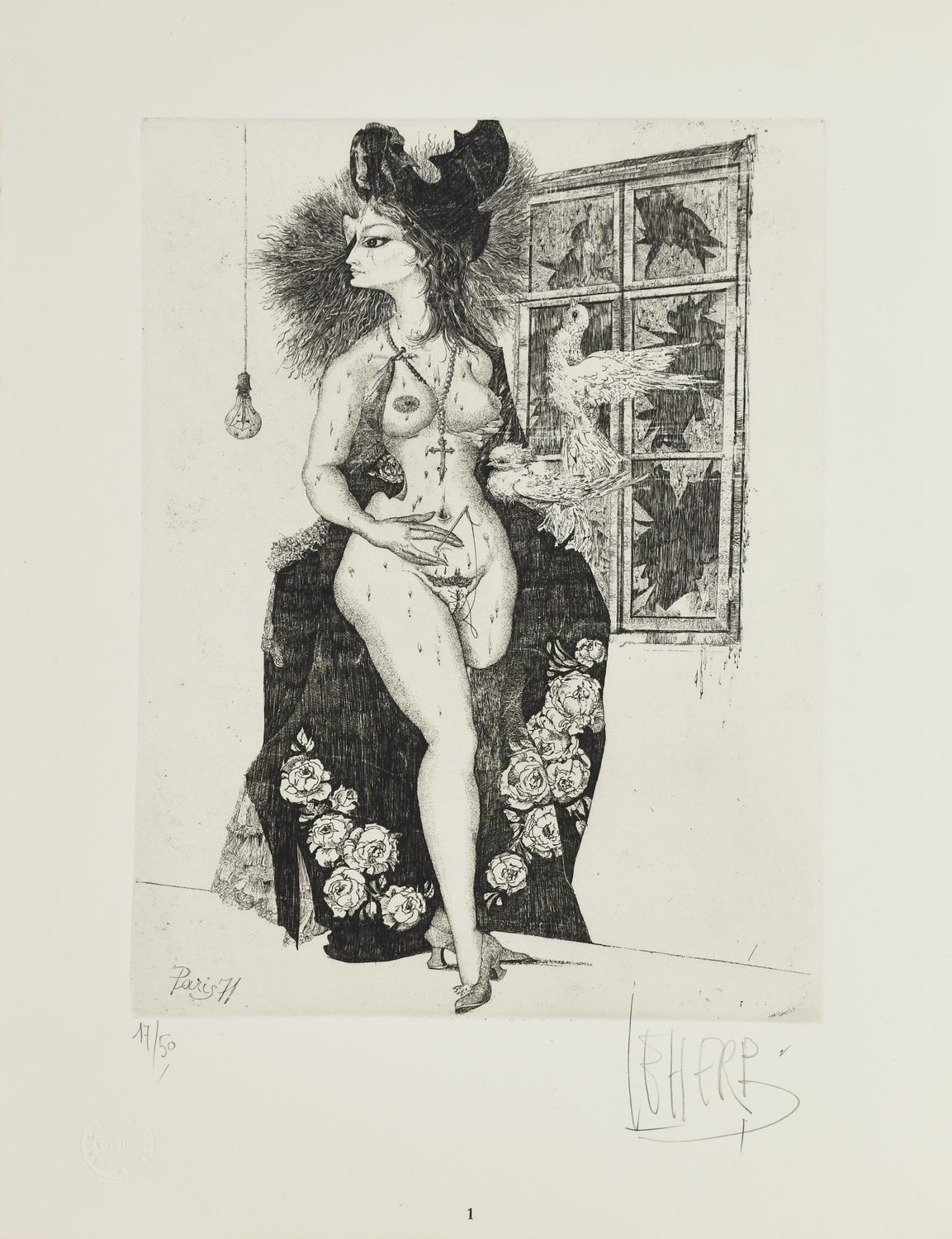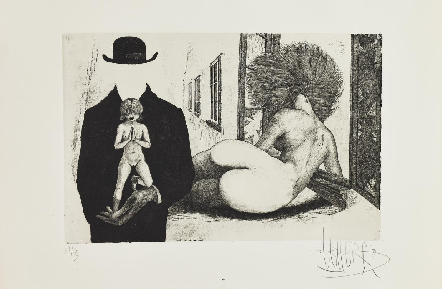 Helmut Leherb LES FENETRES, 1971 cartella contenente 5 acqueforti e testi di...