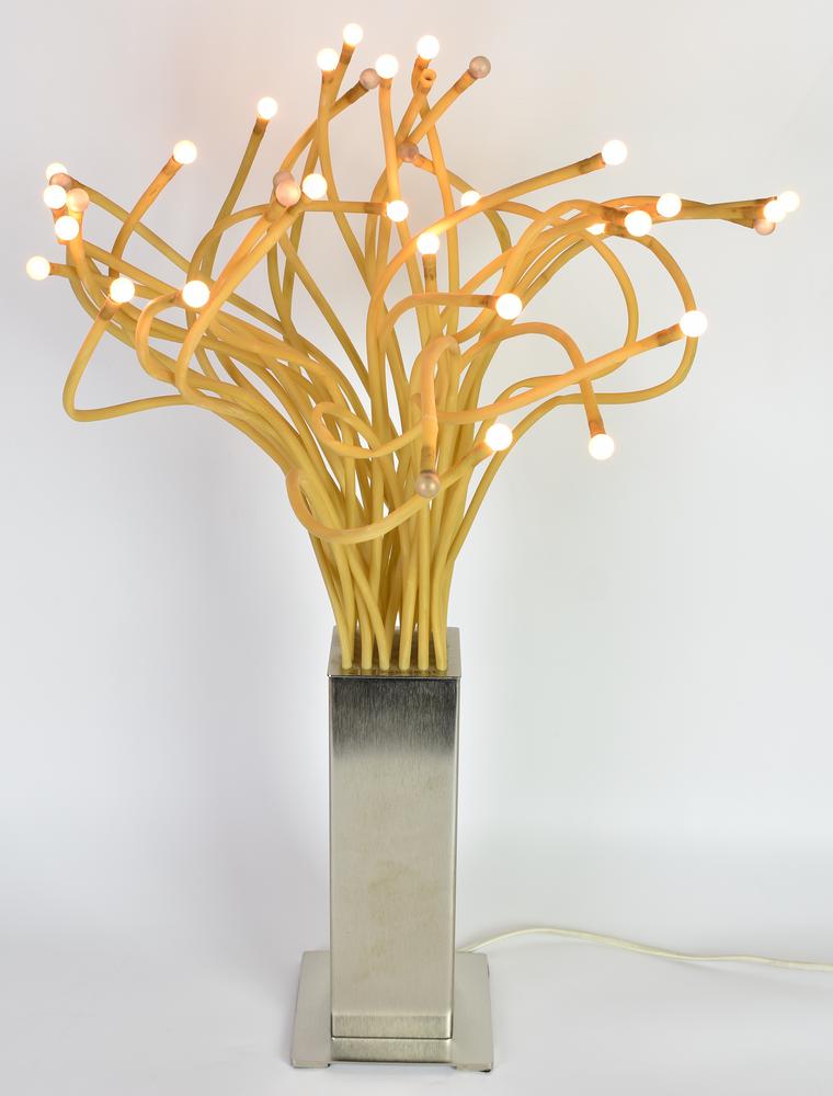 LAMPADA STRANNE O MEDUSA, anni 80 con base in acciaio cromato e spazzolato e...