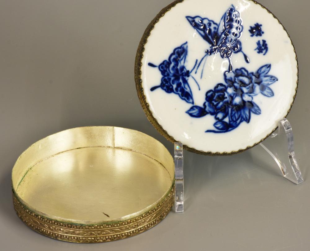 SCATOLA IN MAIOLICA decorata e dipinta, inserti in lastra decorata di metallo...