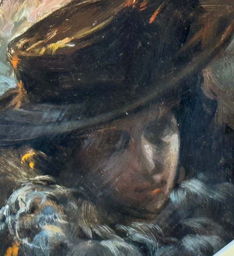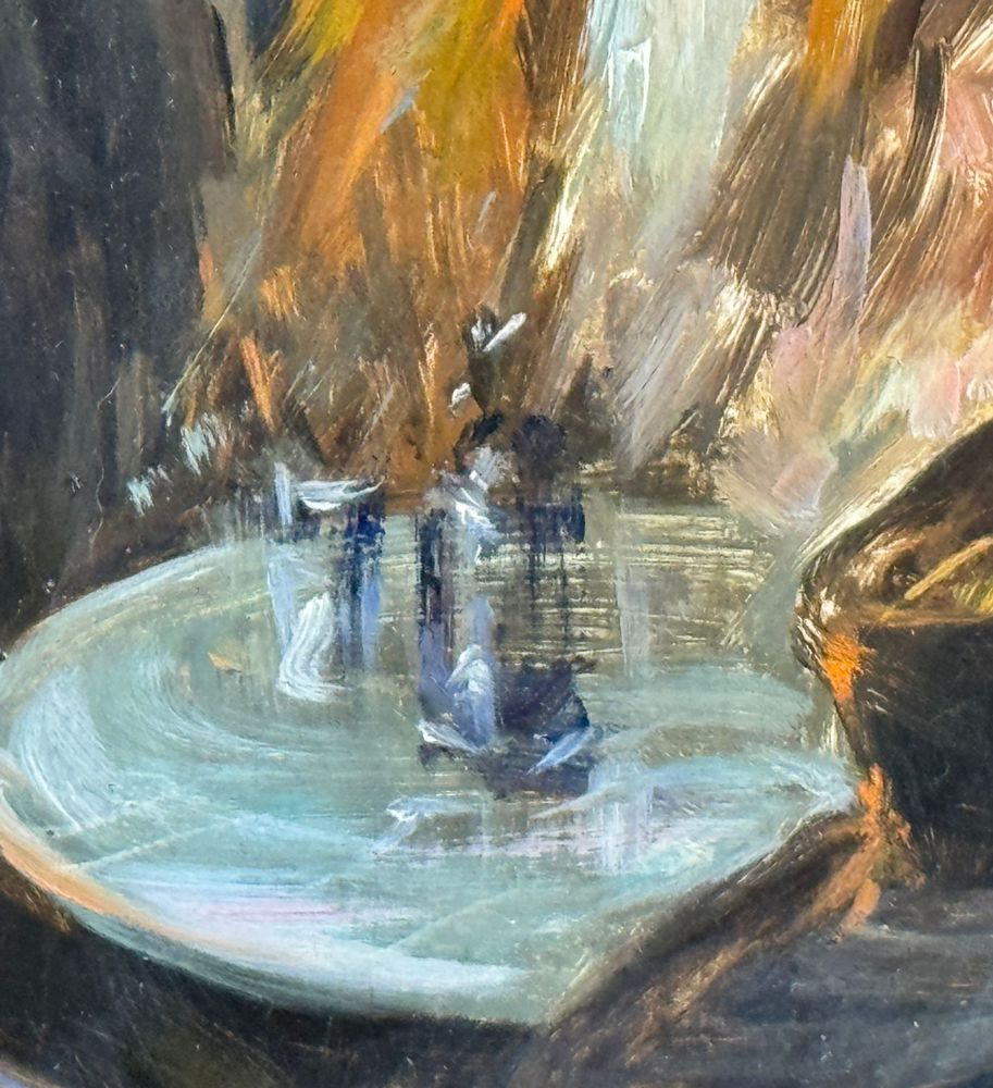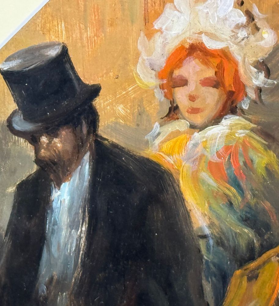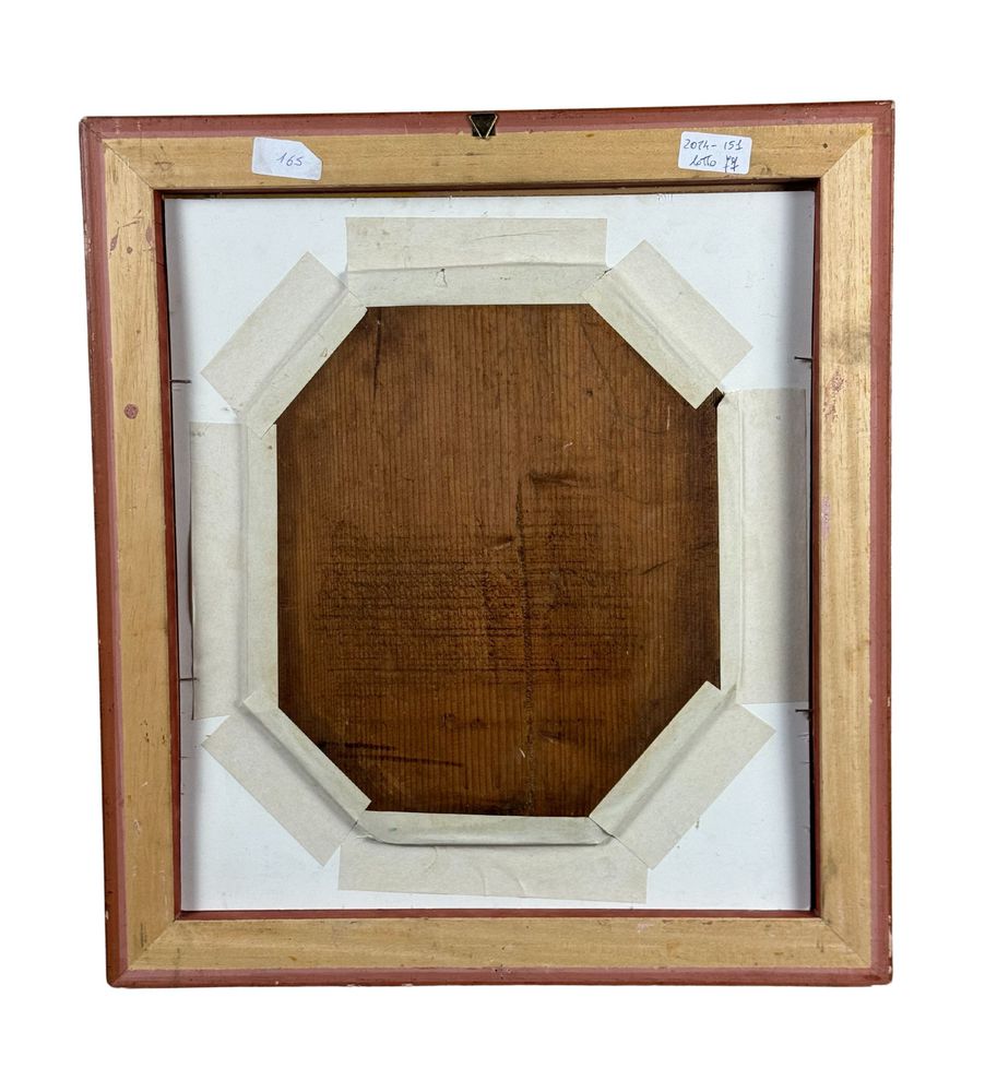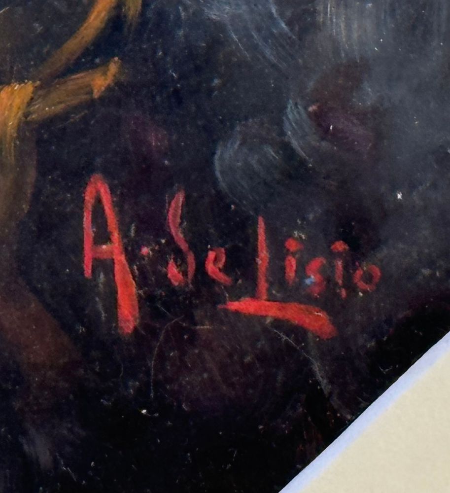 Dipinto olio su tavola, periodo XX secolo scuola Italiana, raffigurante Personaggi al bar. Dimensioni compreso cornice: 43x47 cm. Dimensioni interno cornice: 26x30 cm. Opera attribuita ad Arnaldo De Lisio, reca firma in basso a destra. Opera di forma ottagonale, in buone condizioni.