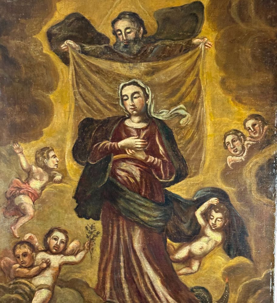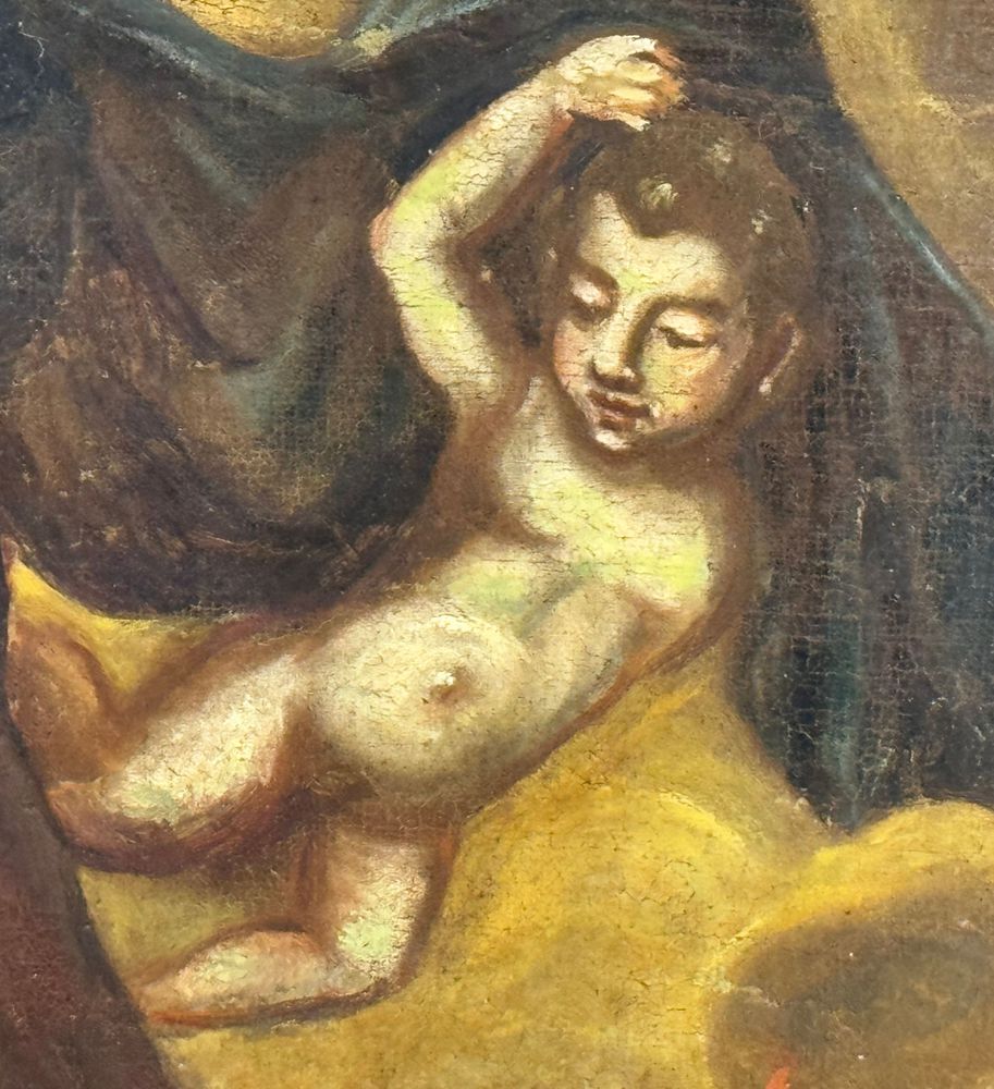Dipinto olio su tela, periodo XVIII secolo scuola Italiana Meridionale, raffigurante Scena Biblica. Dimensioni: 102x75 cm. Da artista anonimo. Opera in buone condizioni. Da segnalare vecchio rintelo e vari punti di restauro.
