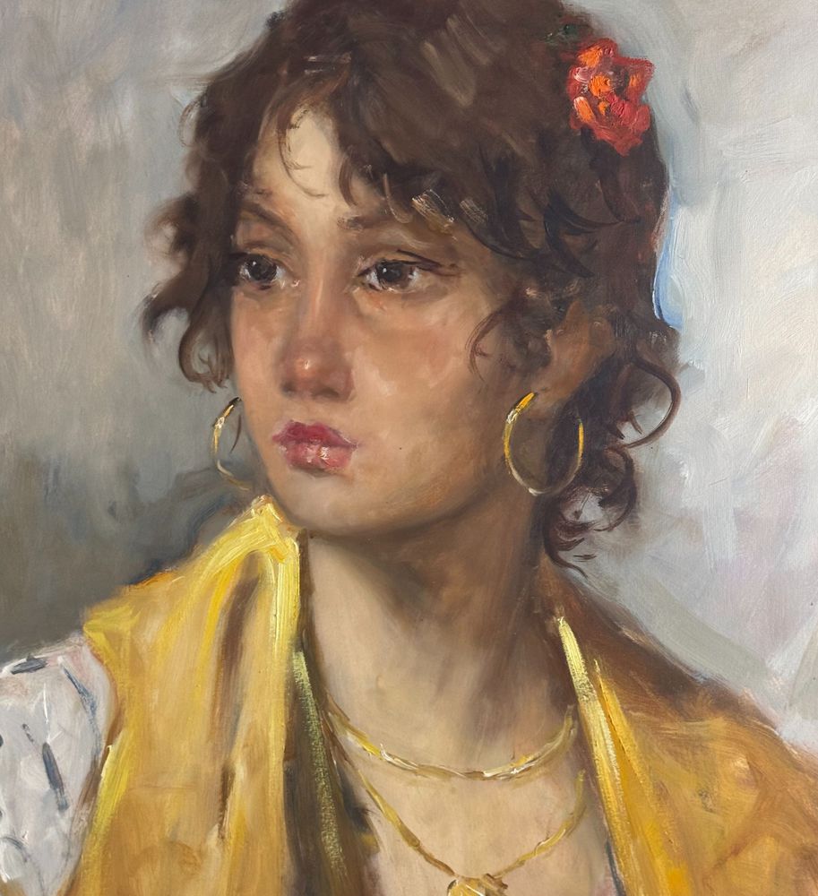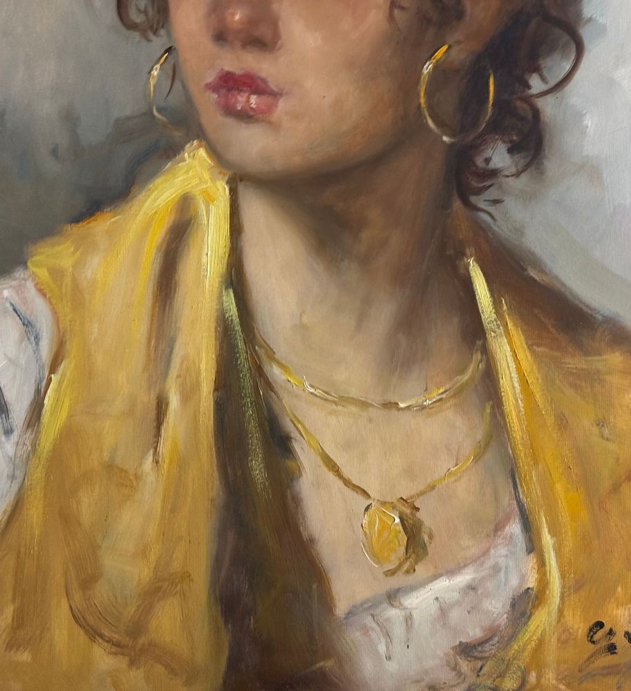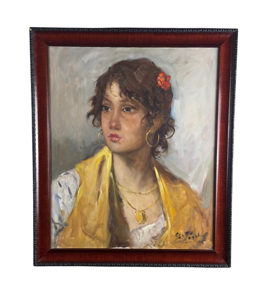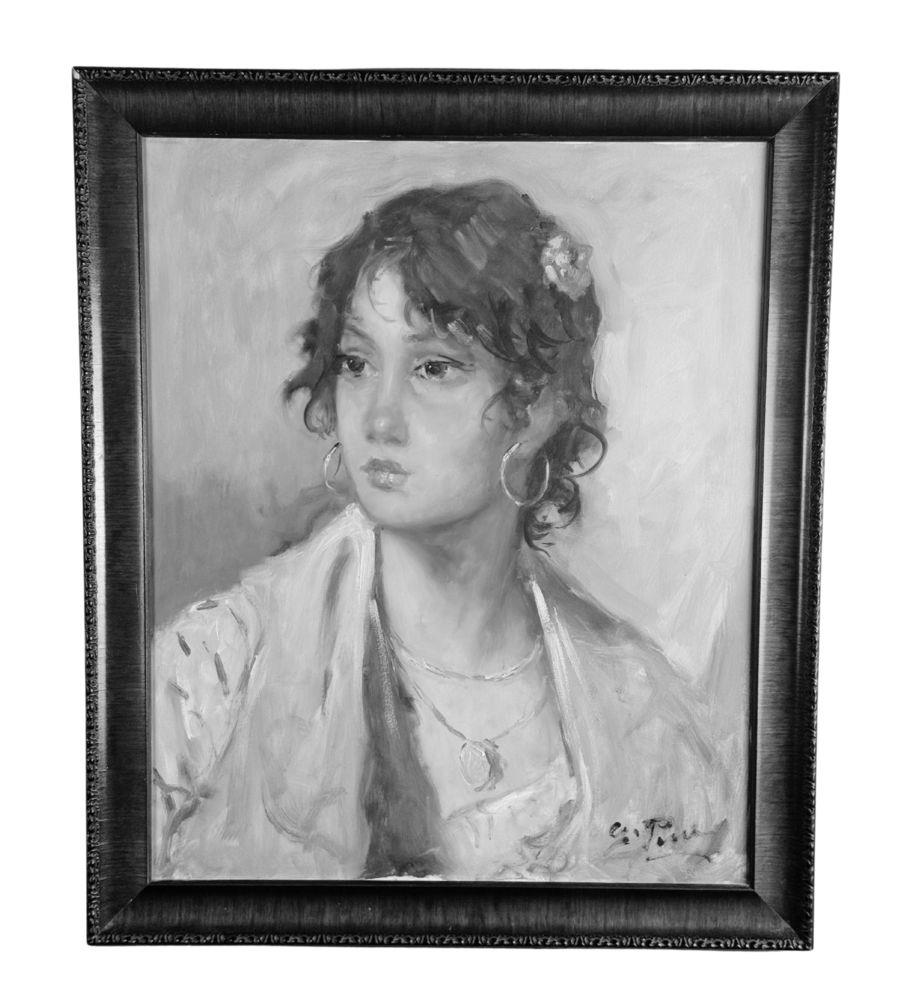 Dipinto olio su tela, periodo XX secolo scuola Italiana, raffigurante Ritratto di giovane donna. Dimensioni compreso cornice: 59x69 cm. Dimensioni interno cornice: 50x60 cm. Reca firma in basso a destra da Giovanni Pane. Opera in buone condizioni.