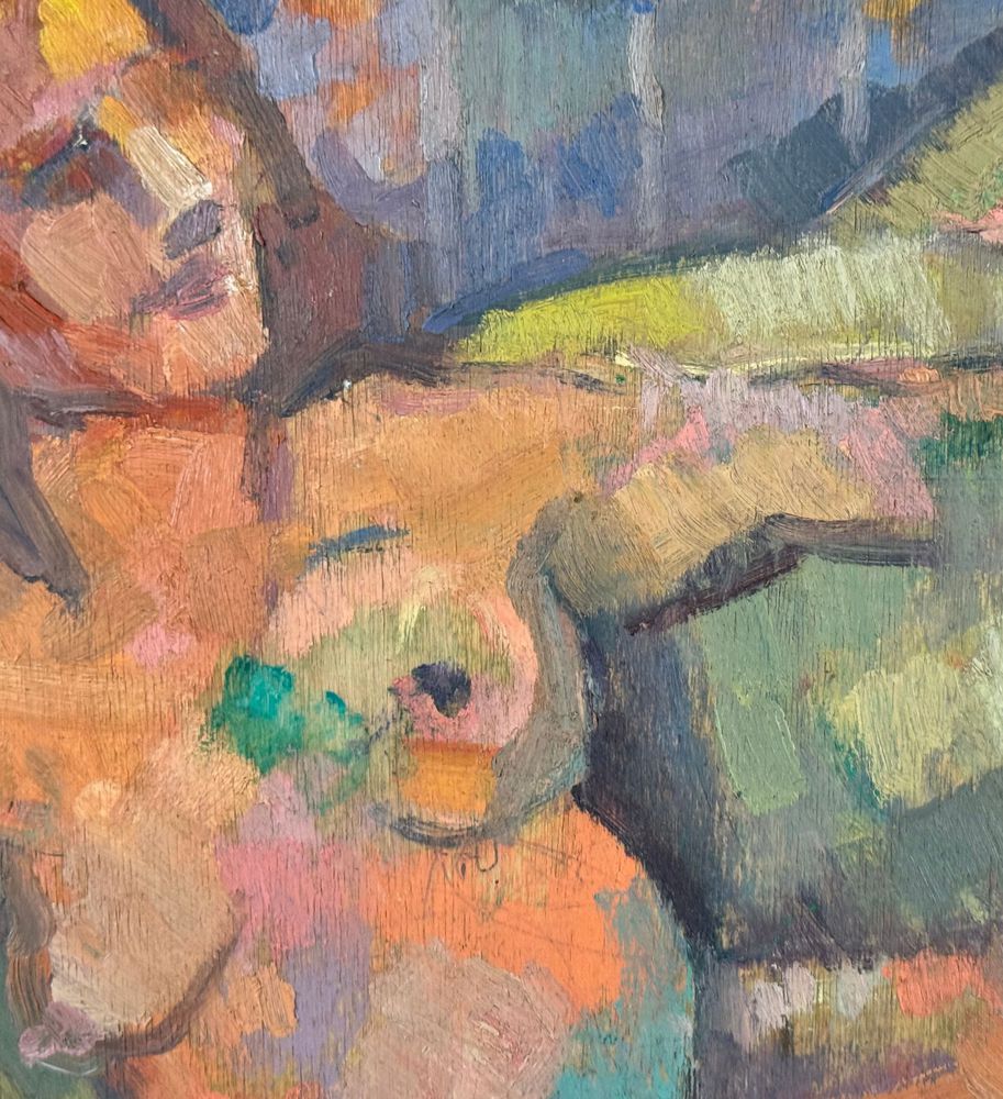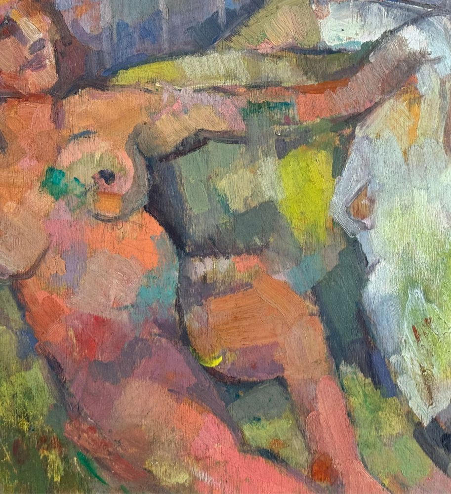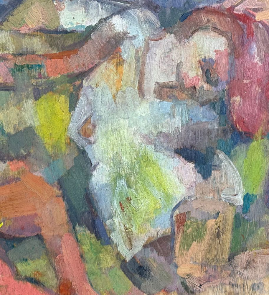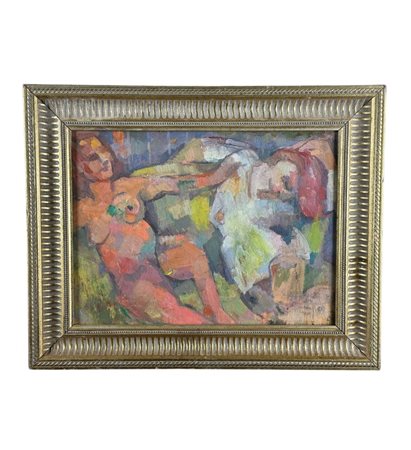 Dipinto olio su pannello, periodo XX secolo scuola Italiana, raffigurante Figure astratte. Omaggio a Paul Cézanne. Dimensioni compreso cornice: 51x41 cm. Dimensioni interno cornice: 40x30 cm. Da artista anonimo. Opera in buone condizioni.