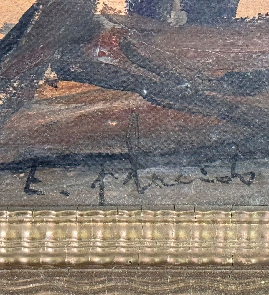 Dipinto olio su tela, periodo XX secolo scuola Italiana, raffigurante Marina. Dimensioni compreso cornice: 72x51 cm. Dimensioni interno cornice: 60x40 cm. Reca firma in basso a destra da Errico Placido. Opera in buone condizioni. Da segnalare un piccolo taglio alla tela di 2 cm in alto a sinistra.