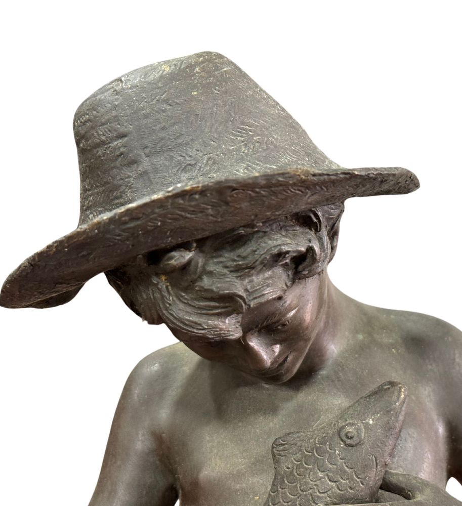 Scultura in bronzo a cera persa, periodo XX secolo, raffigurante Pescatore napoletano. Dimensioni: h70x28x23 cm. Scultura in buone condizioni.