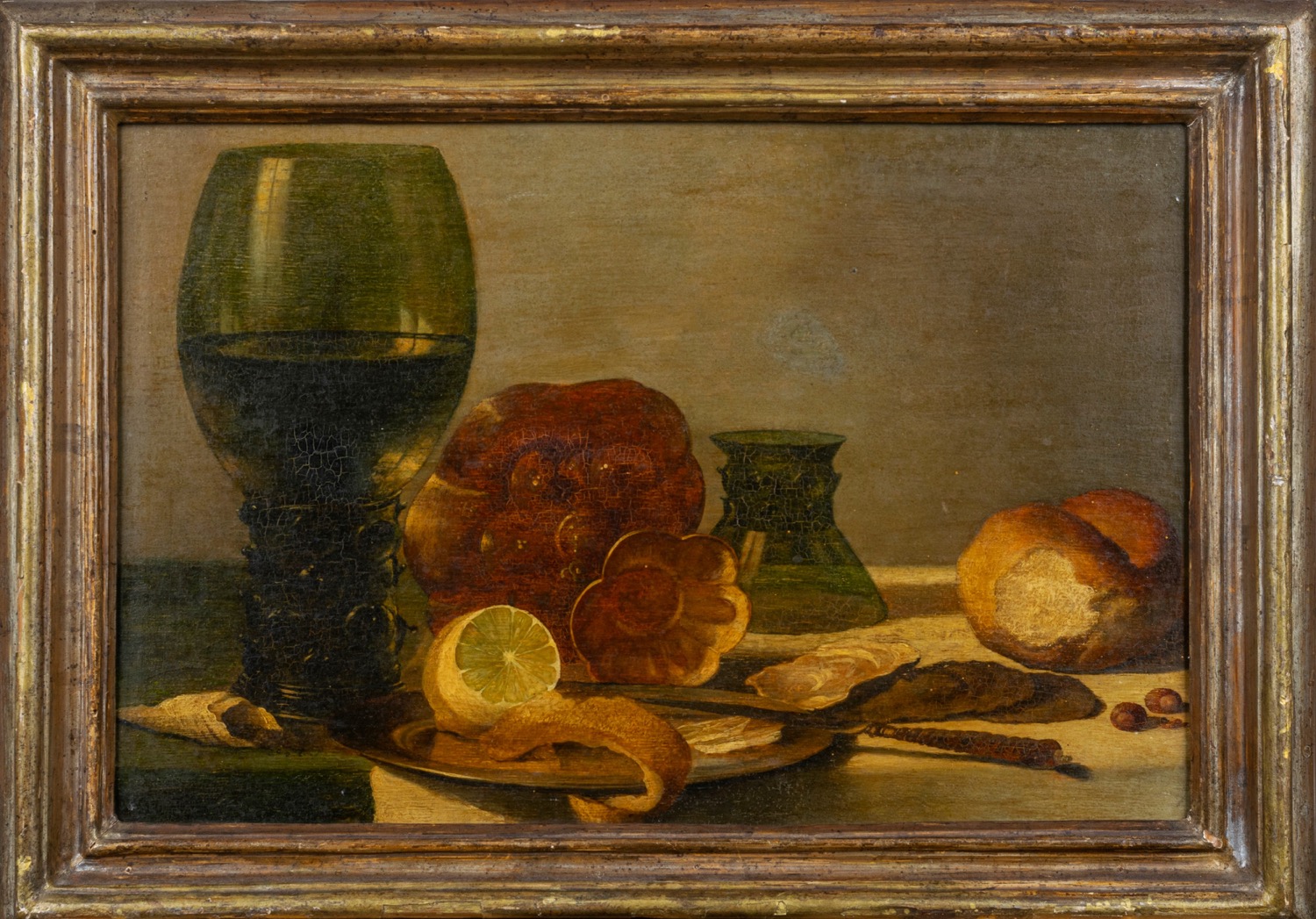 Lot 75 | Imitatore di Pieter Claesz. - Natura morta con bicchiere di vetro e limone su un tavolo