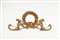 a forma di corona di alloro con fiori tra due dardi incrociati, con fiocco centrale e volute laterali fogliate terminanti a testa d'aquila