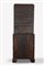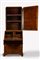 parte superiore con anta a specchio celante due ripiani; parte inferiore a ribalta con fronte a tre cassetti e pianetto estraibile, con calatoia celante sei tiretti, sei vani e sportello centrale apribile
