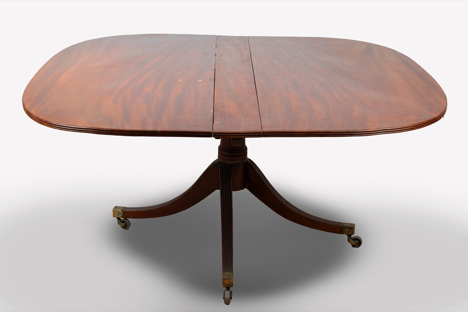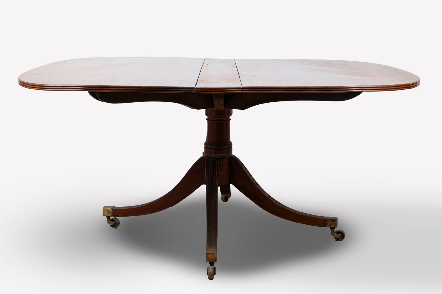 Tavolo da pranzo lastronato in mogano ad ali laterali richiudibili. Inghilterra, secolo XIX
