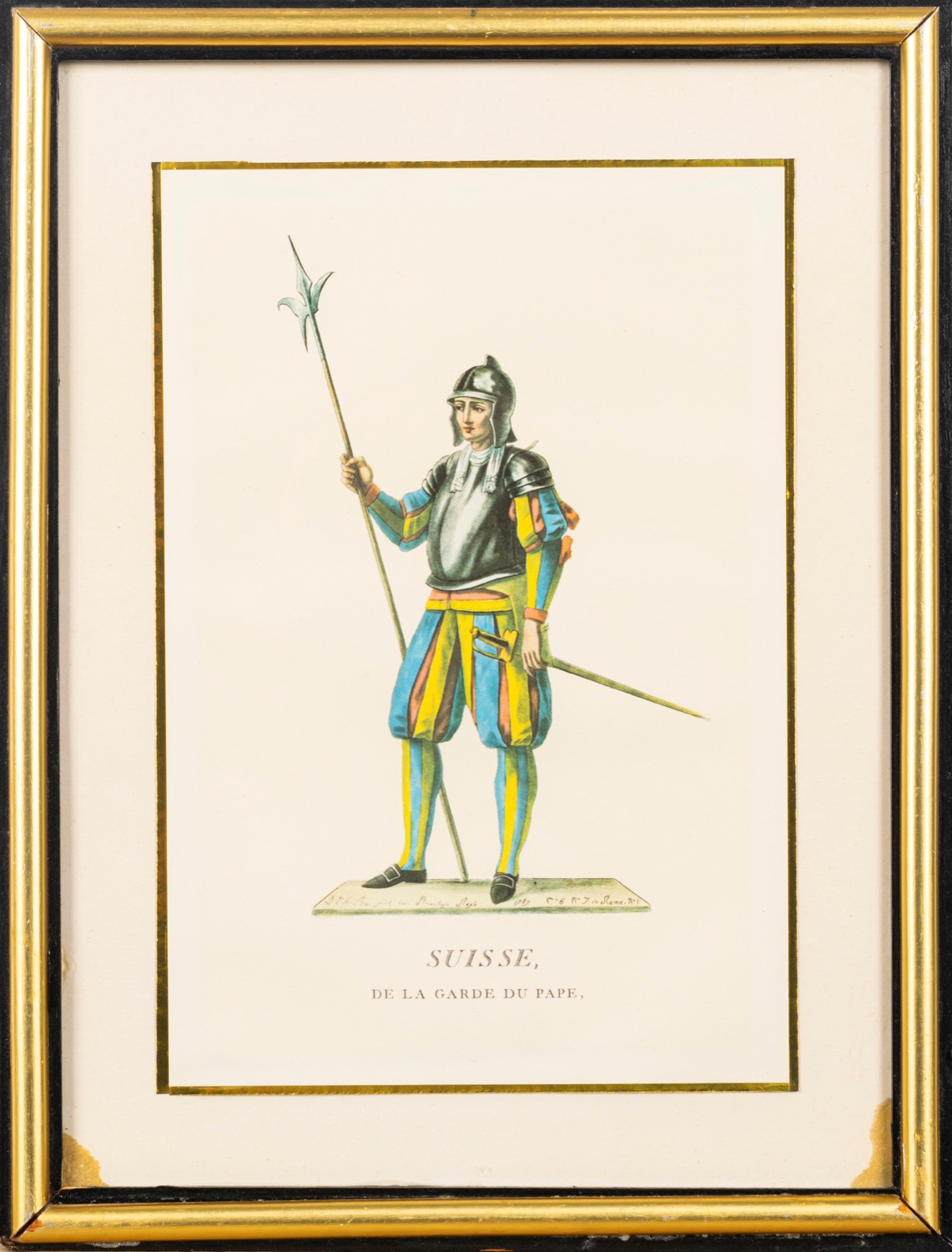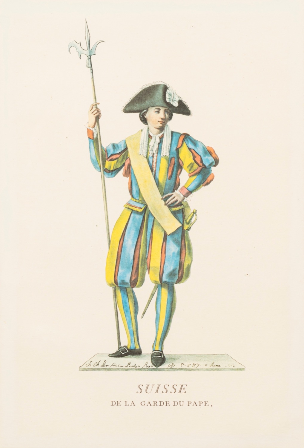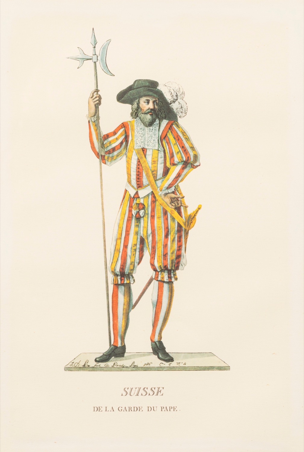 Lotto composto da quattro stampe raffiguranti costumi delle Guardie Svizzere