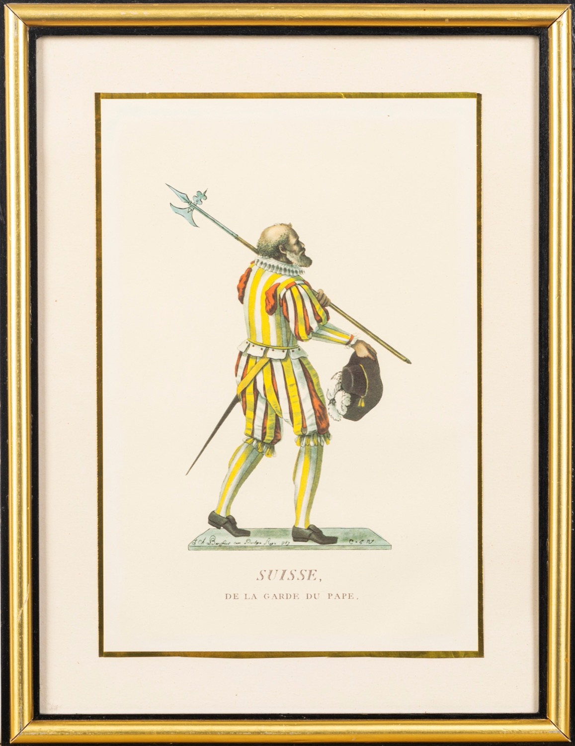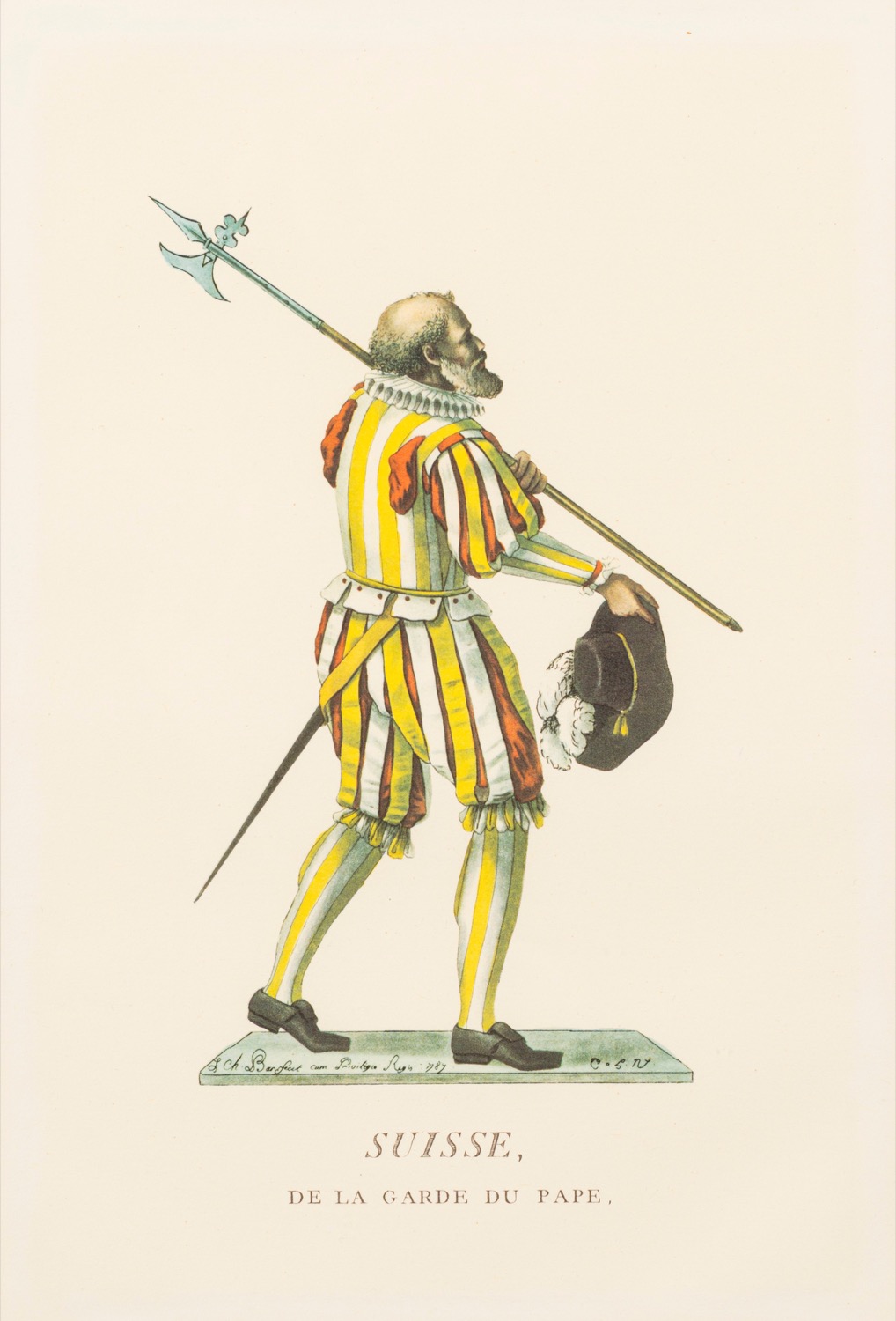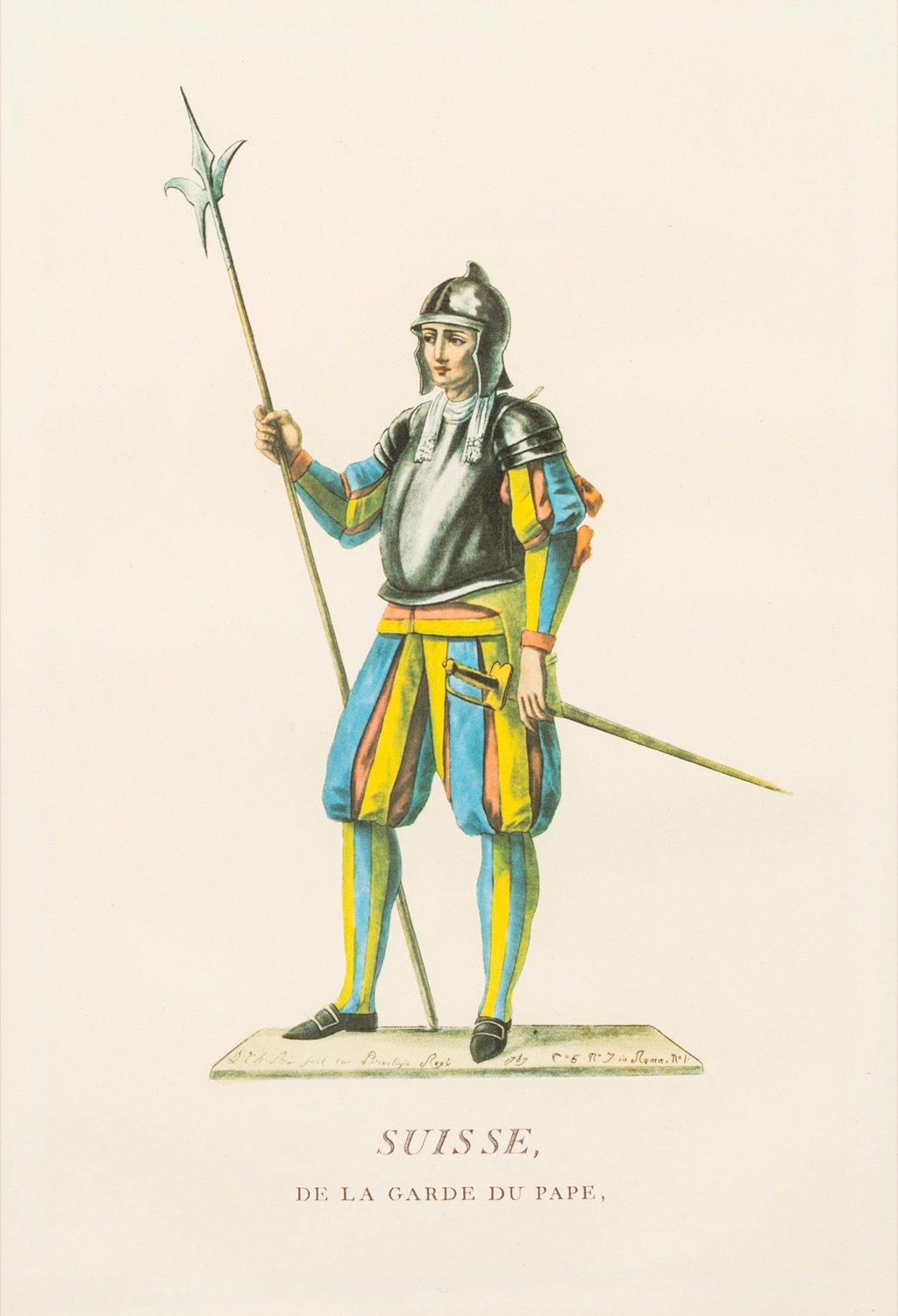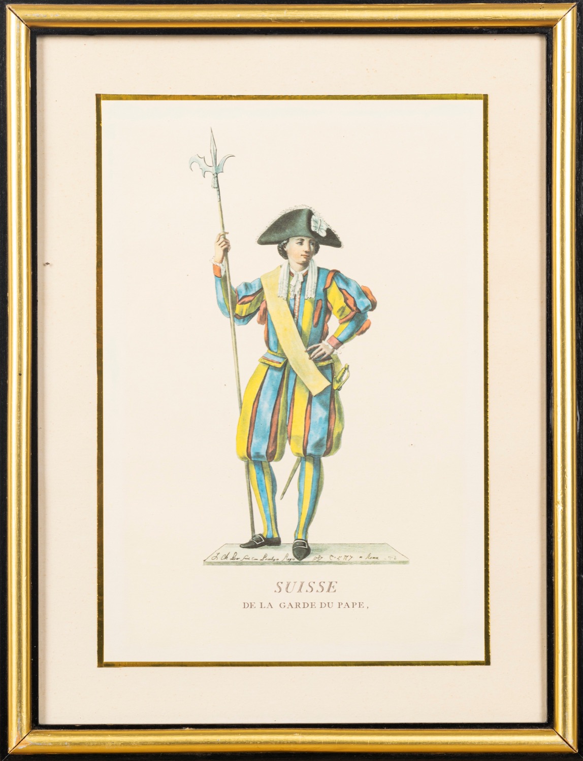 Lotto composto da quattro stampe raffiguranti costumi delle Guardie Svizzere