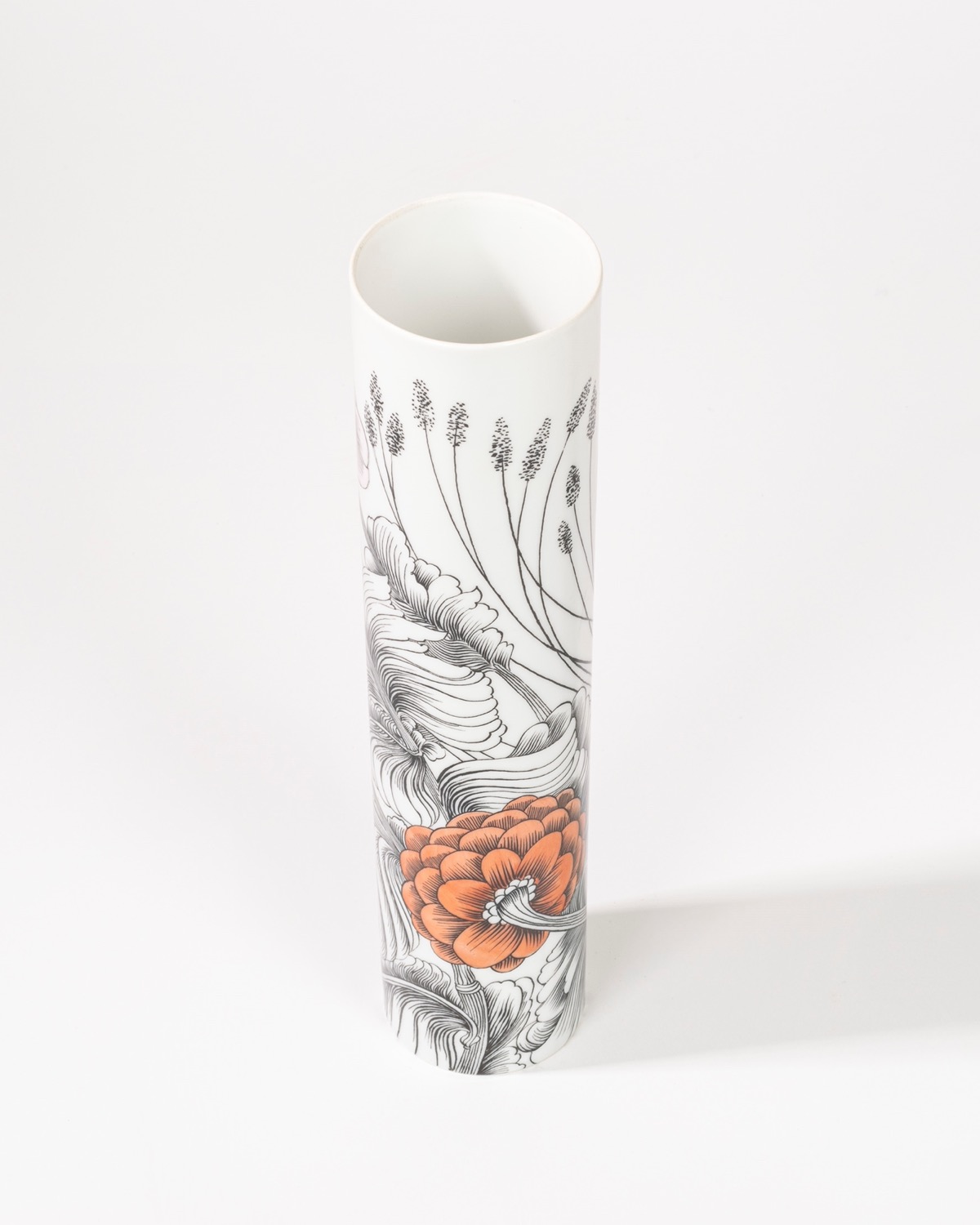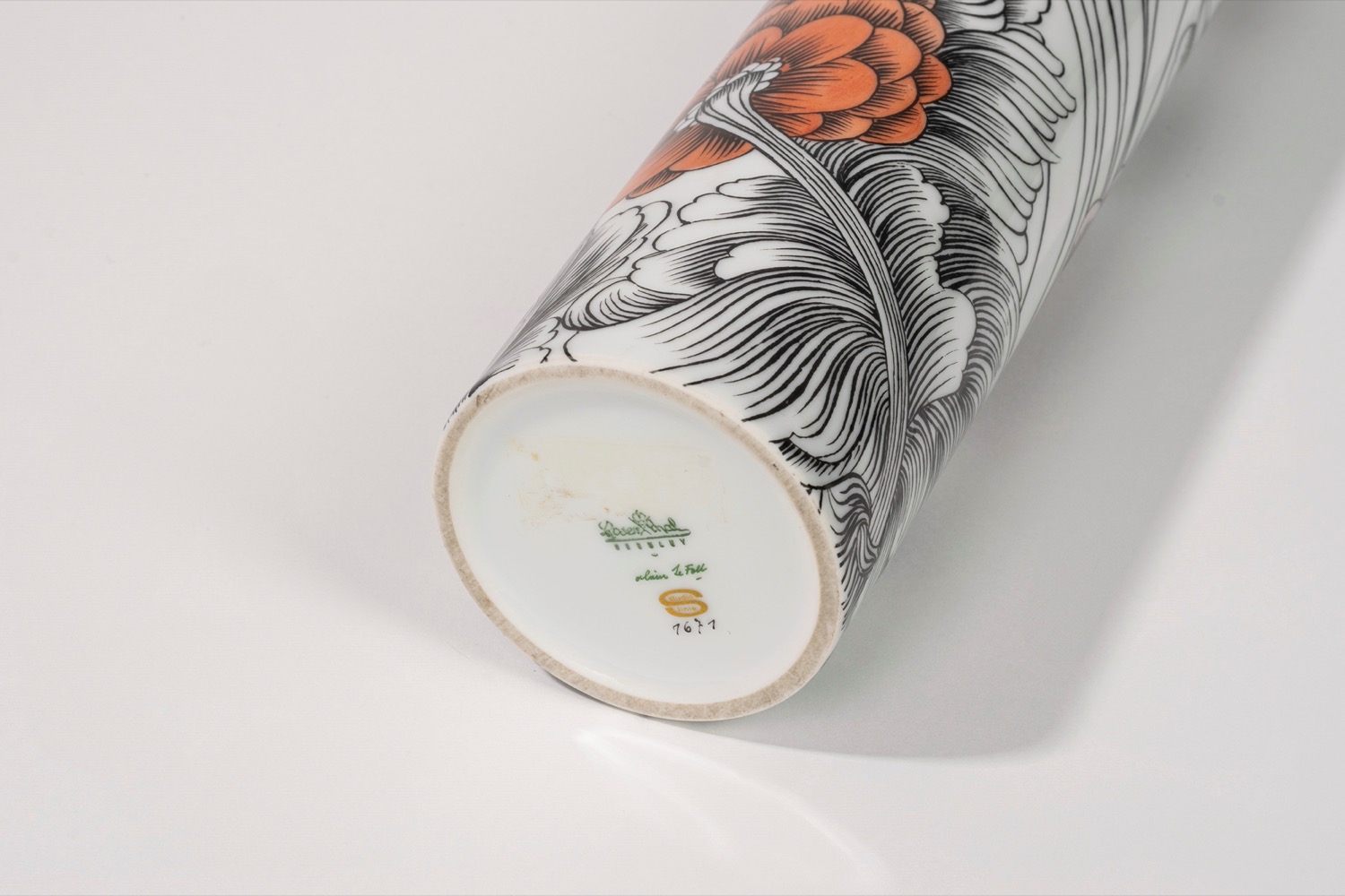 Vaso cilindrico in porcellana policroma, manifattura Rosenthal, secolo XX