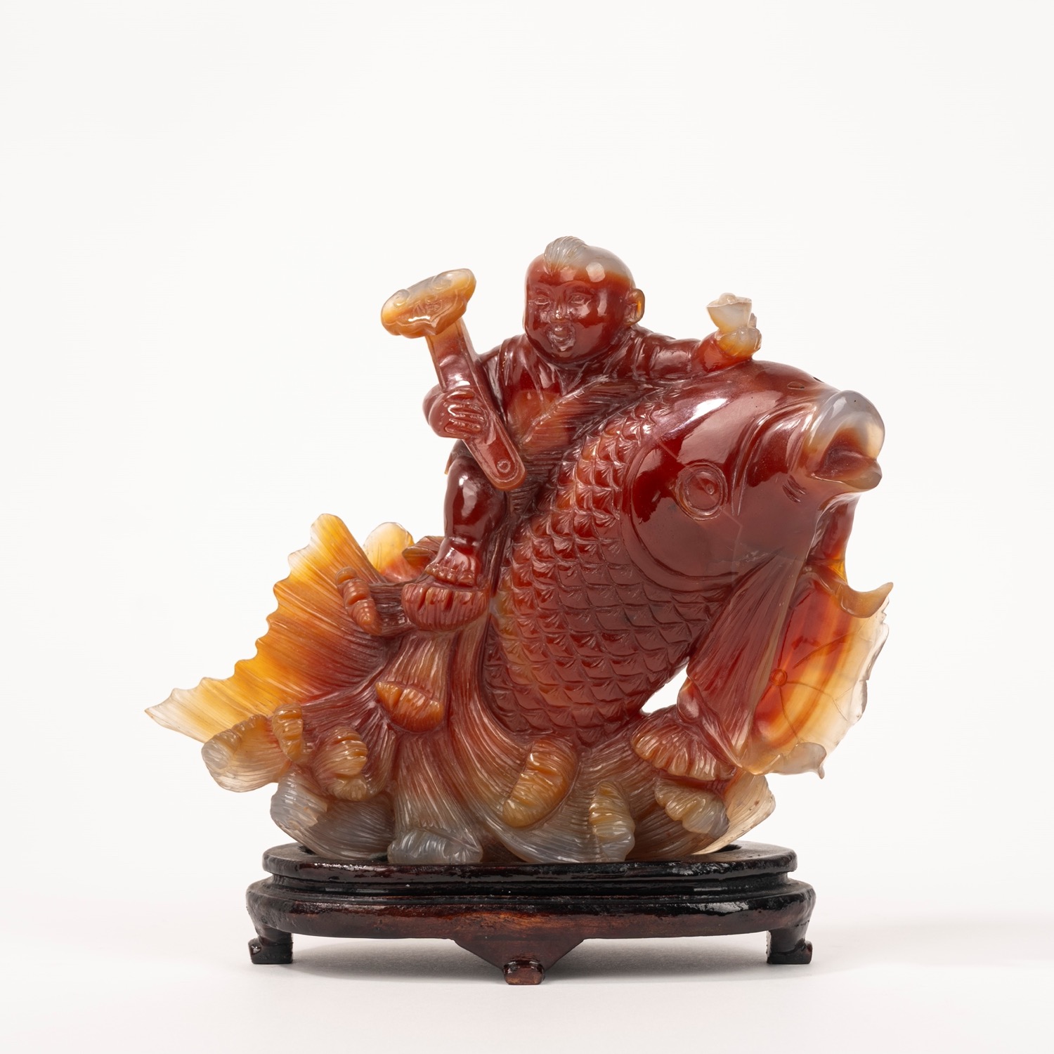 raffigurante fanciullo con scettro Rui a cavallo di una carpa