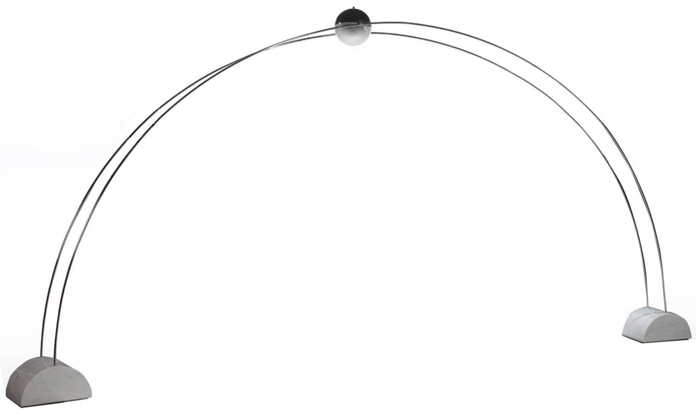 Studio Arditi Lampada Il Ponte Produzione: Sormani, 1971 Lampada da terra a luce diffusa, arco in acciaio, diffusori in Lexan orientabili e scorrevoli lungo l’arco (alcuni danni e mancanze) h variabile x 380 x 30