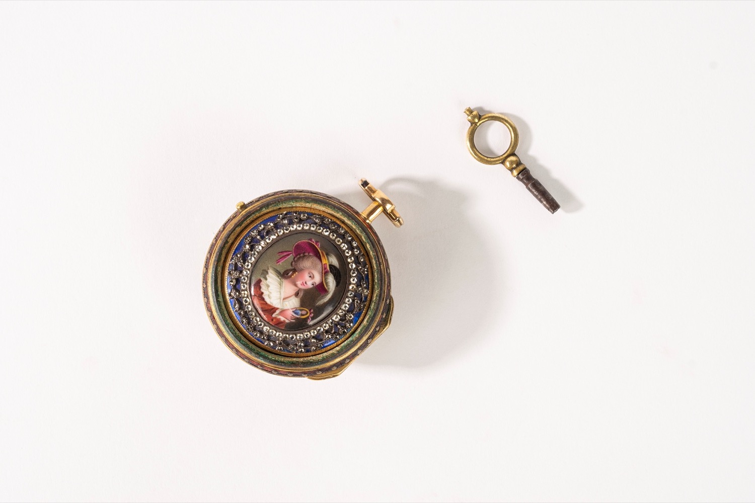 controcassa in metallo decorato con smalti e cristalli incastonati