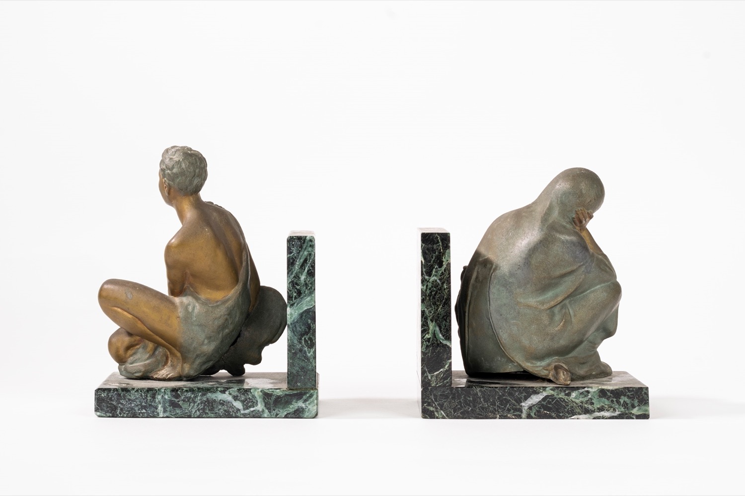 Coppia di fermalibri con figure allegoriche della Notte e del Giorno