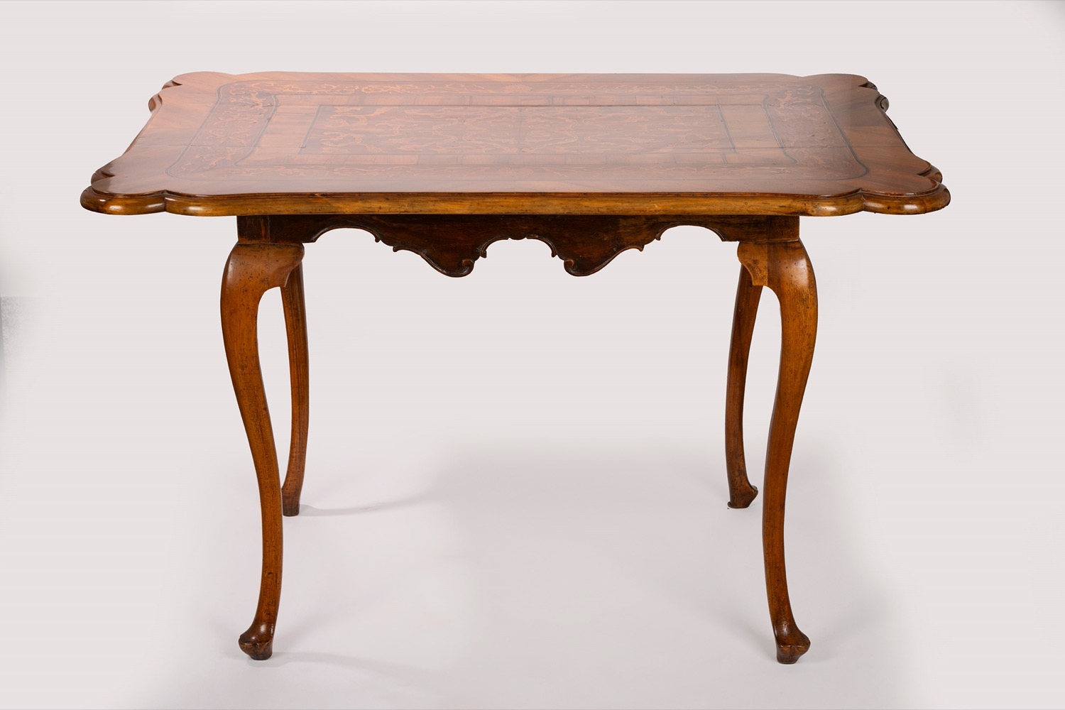 piano polilobato decorato a volute fogliate e pappagalli, gambe mossepiano polilobato decorato a volute fogliate e pappagalli, gambe mosse