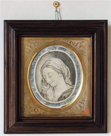 VOLTO DI MADONNA XVII secolo olio su scagliola applicata a placca in ardesia,...