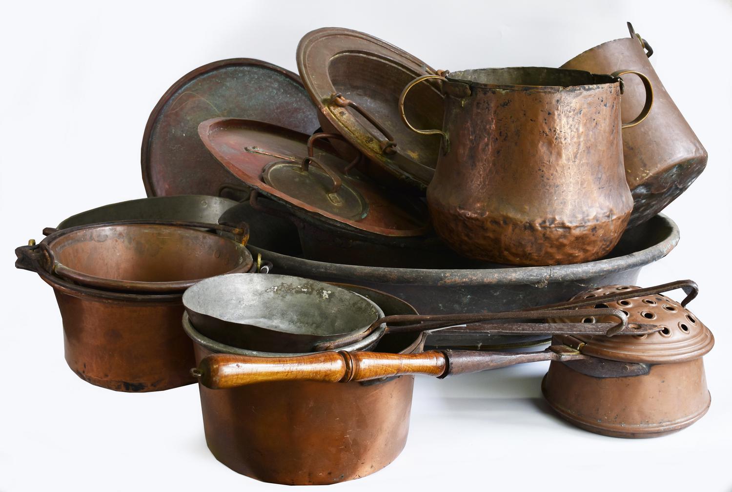 Lot 110 | LOTTO DI SEDICI OGGETTI IN RAME DI VARIA FORMA ED EPOCA Beni presso magazzino...
