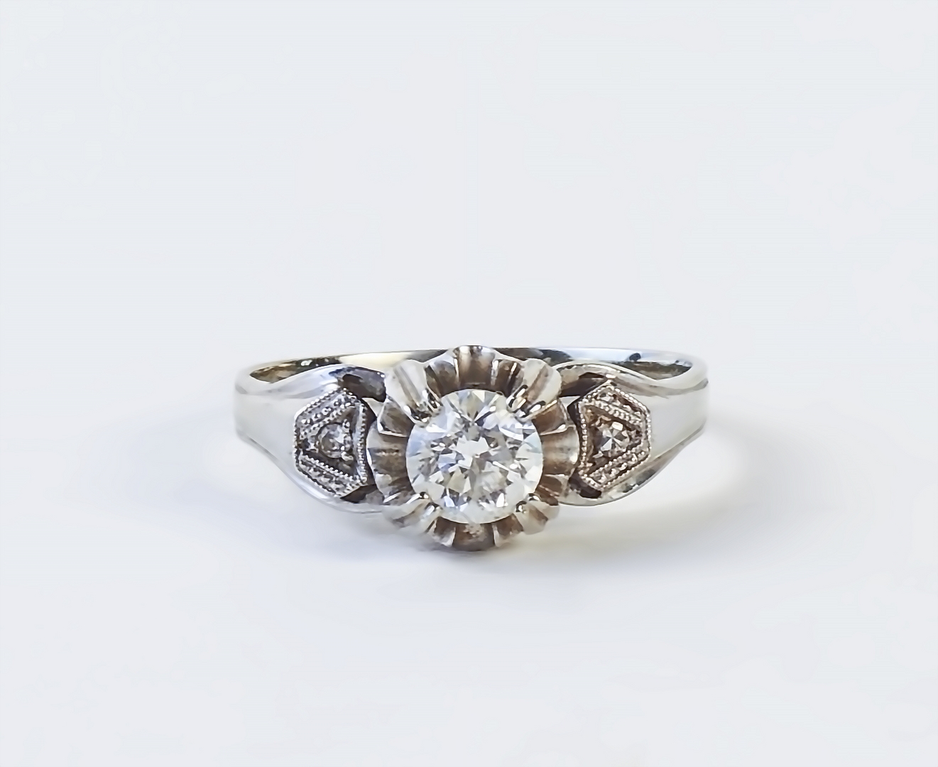 ANELLO SOLITARIO IN ORO BIANCO con diamante taglio brillante ct 0,50 circa, gr 3,50