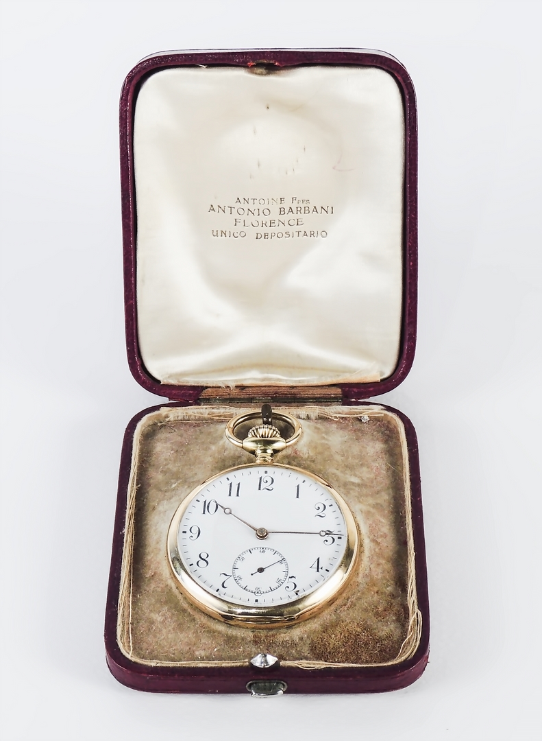 OROLOGIO DA TASCA CRONOMETRO IN ORO GIALLO Antoine Freres, Besancon, inizio...