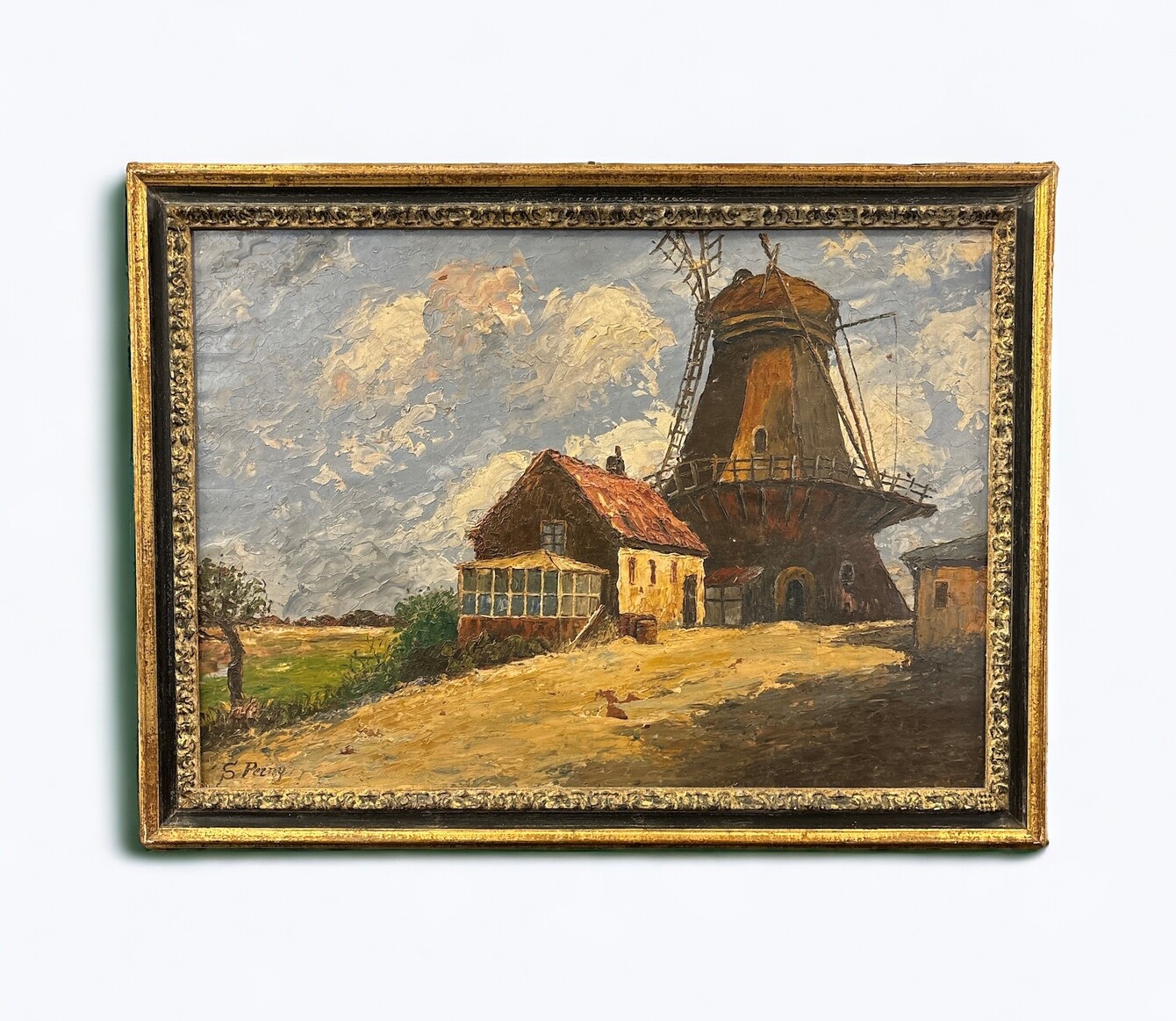 Mulino a vento Pittore francese - prima metà del XX secolo Olio su tavola 46 x 65 cm