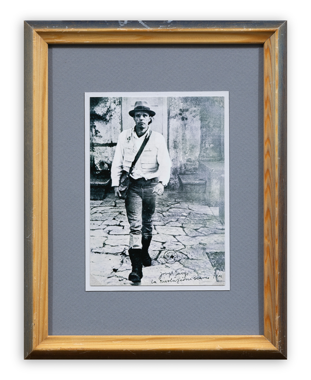 Cartolina in bianco e nero ritraente Joseph Beuys