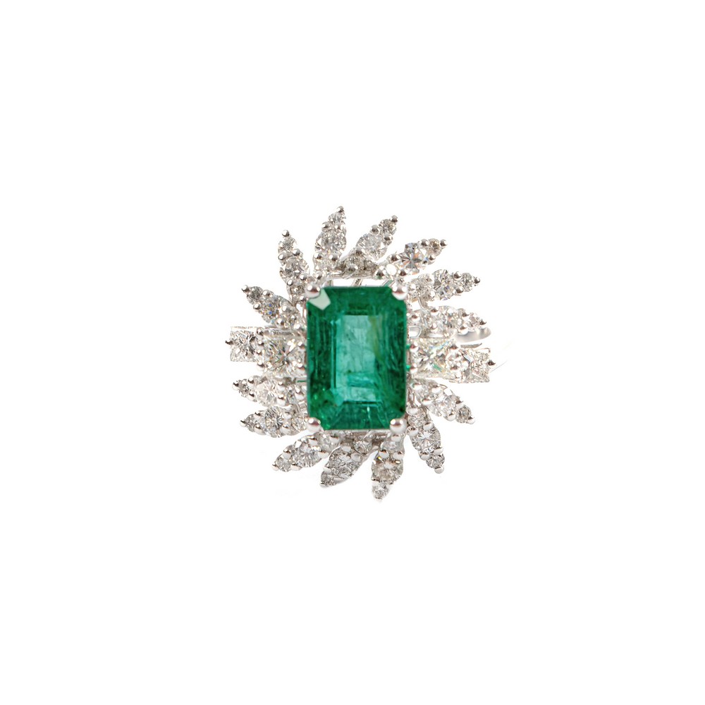 ANELLO in oro bianco 18 KT con diamanti e smeraldo