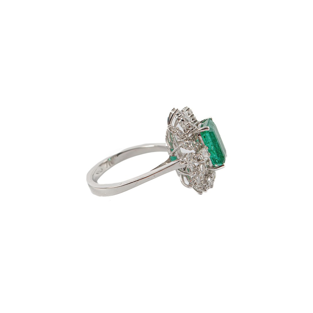 ANELLO in oro bianco 18 KT con diamanti taglio brillante ct. 0,62 F COLOR VS, diamanti taglio princess ct. 0,39 F COLOR VS e smeraldo ct. 2,13 (g. 6,02) (presenta certificato gemmologico).