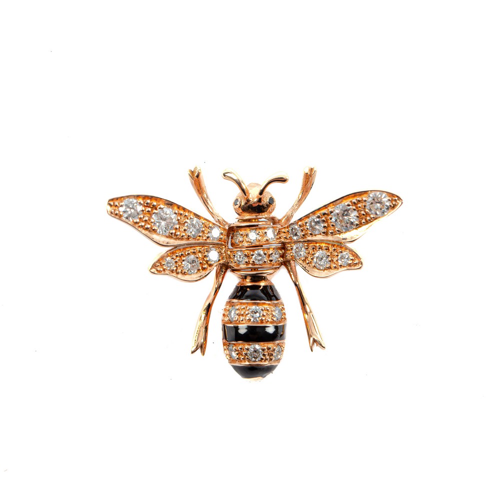 SPILLA a guisa di ape in oro 18 KT con brillanti e smalti