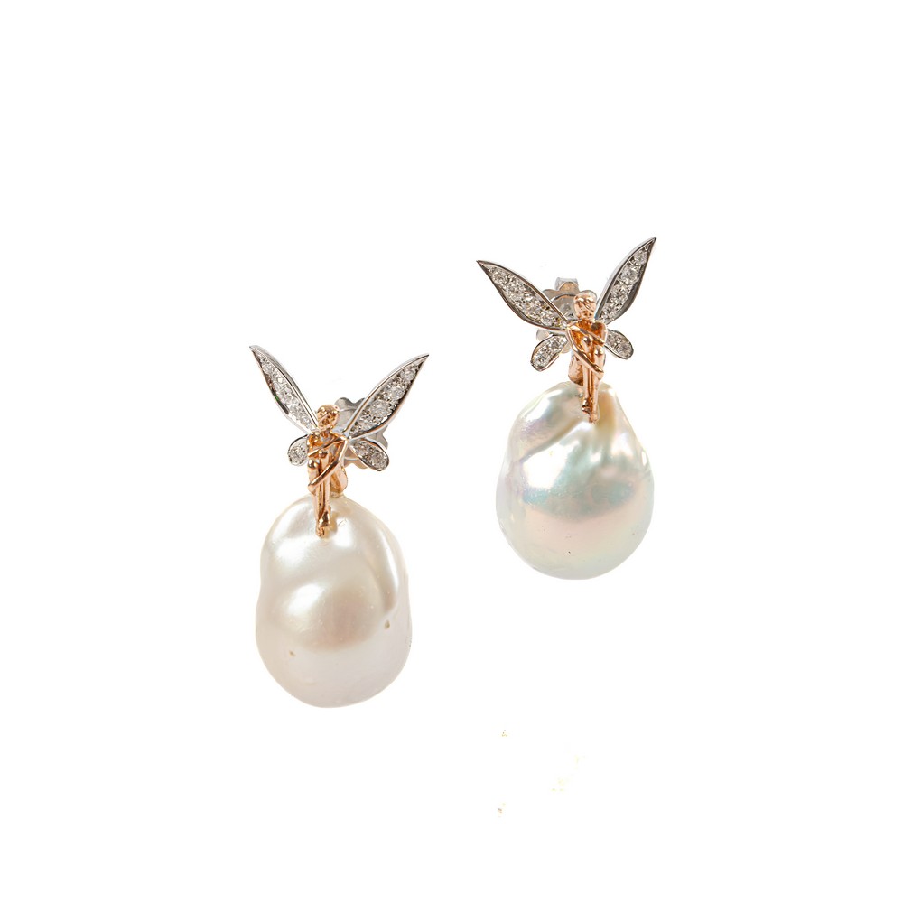 Lot 124 | ORECCHINI in oro bianco e giallo 18 KT con brillanti e perle