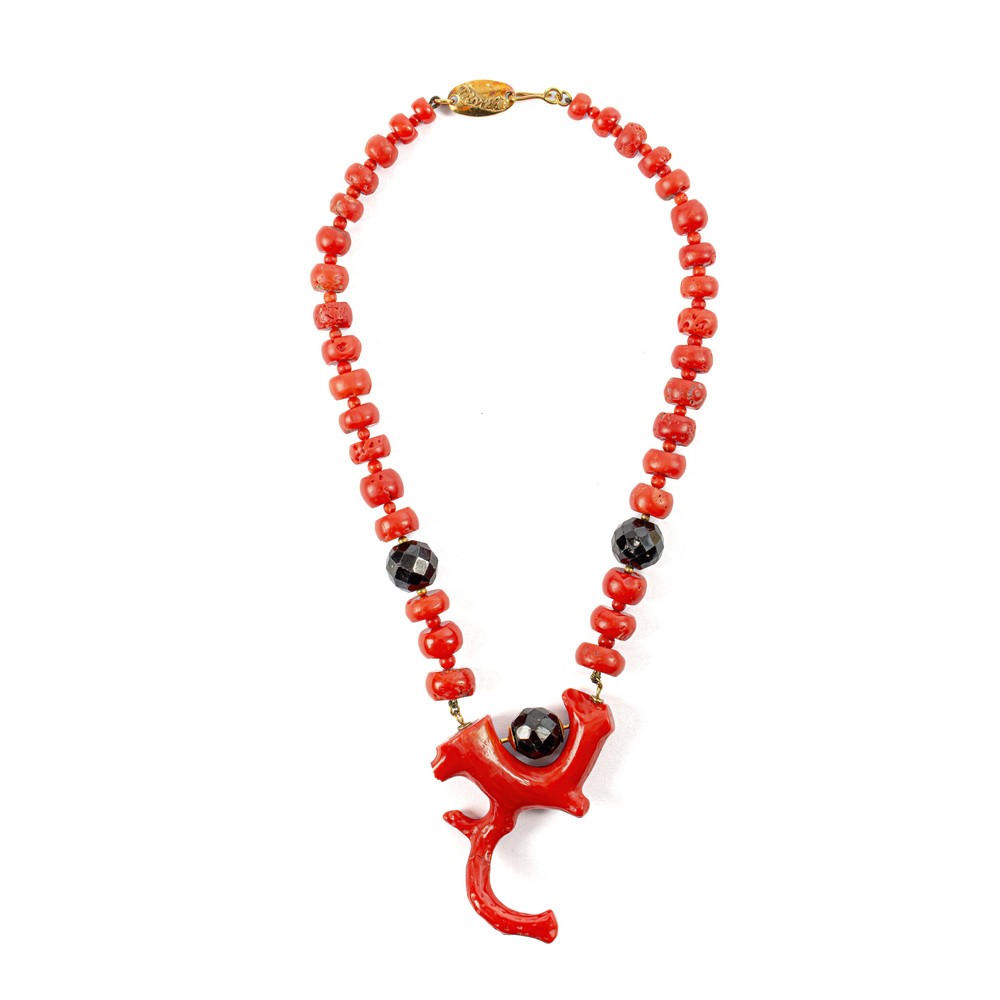 Lot 173 | COLLANA in corallo e onice sintetico con susta in oro 18 KT
