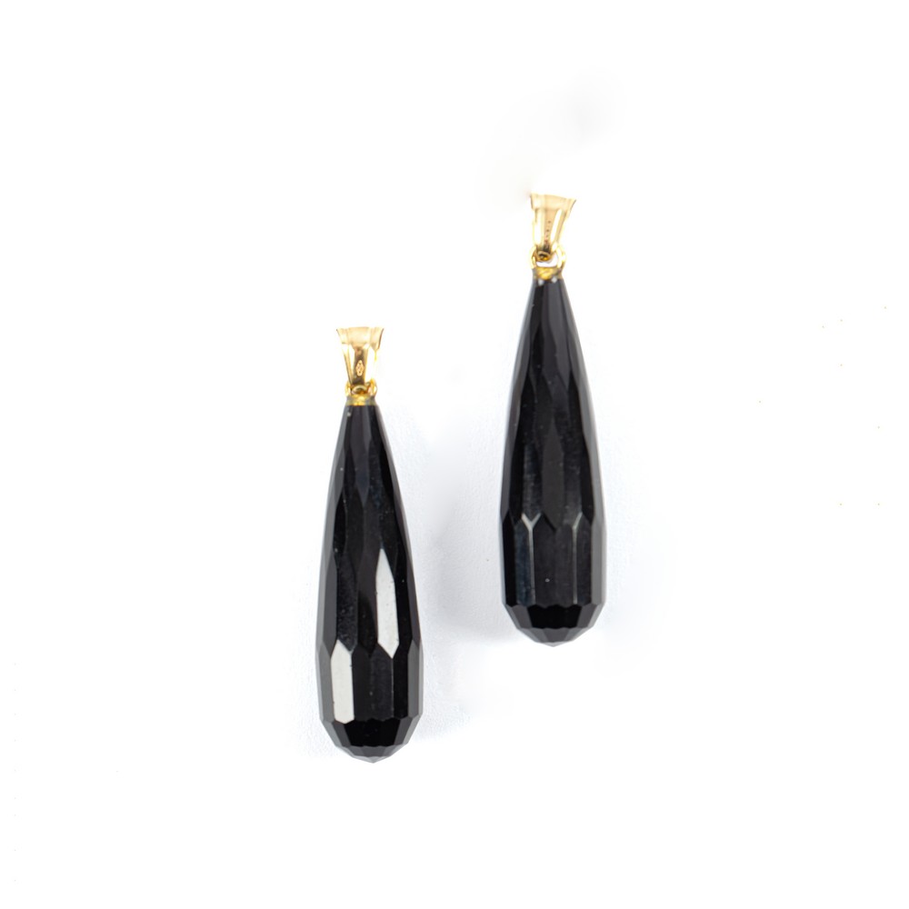 DUE PENDENTI in oro giallo 18 KT e onice sintetico sfaccettato (g. 17,30).