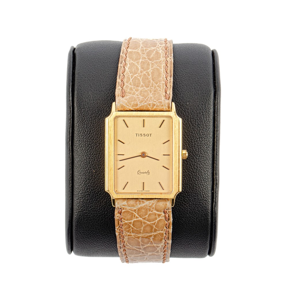 OROLOGIO da polso Tissot, cassa in oro giallo 18 KT, movimento al quarzo. cinturino in pelle non originale.