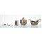 Zuccheriera in argento, zuccheriera in sheffield, portafotografie laminato in argento e cinque oggetti in microfusione.