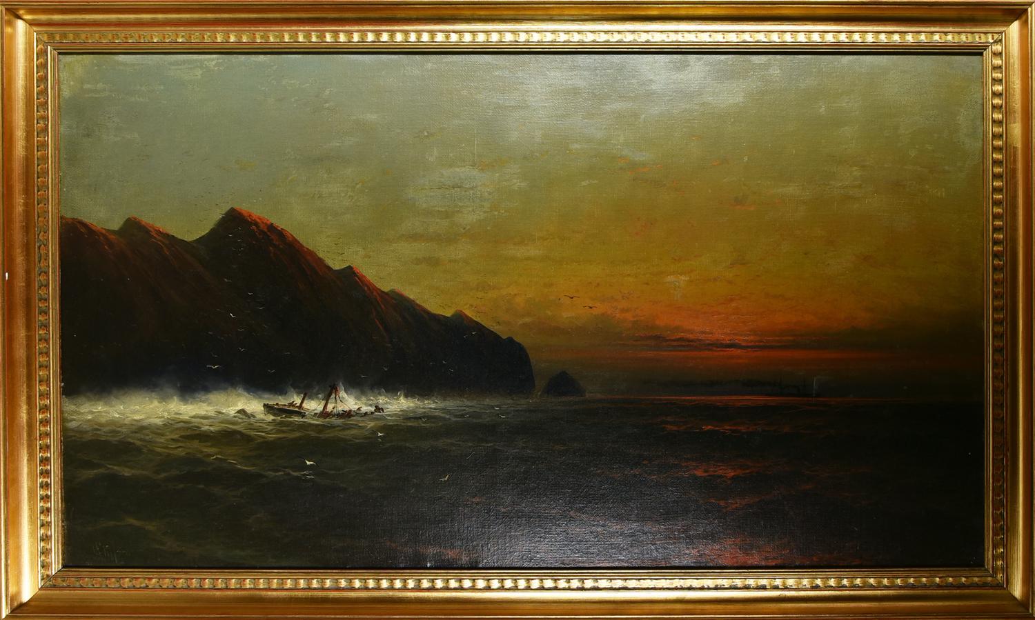 Scuola americana del XIX secolo MARINA olio su tela, cm 61x107...