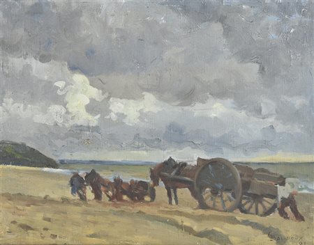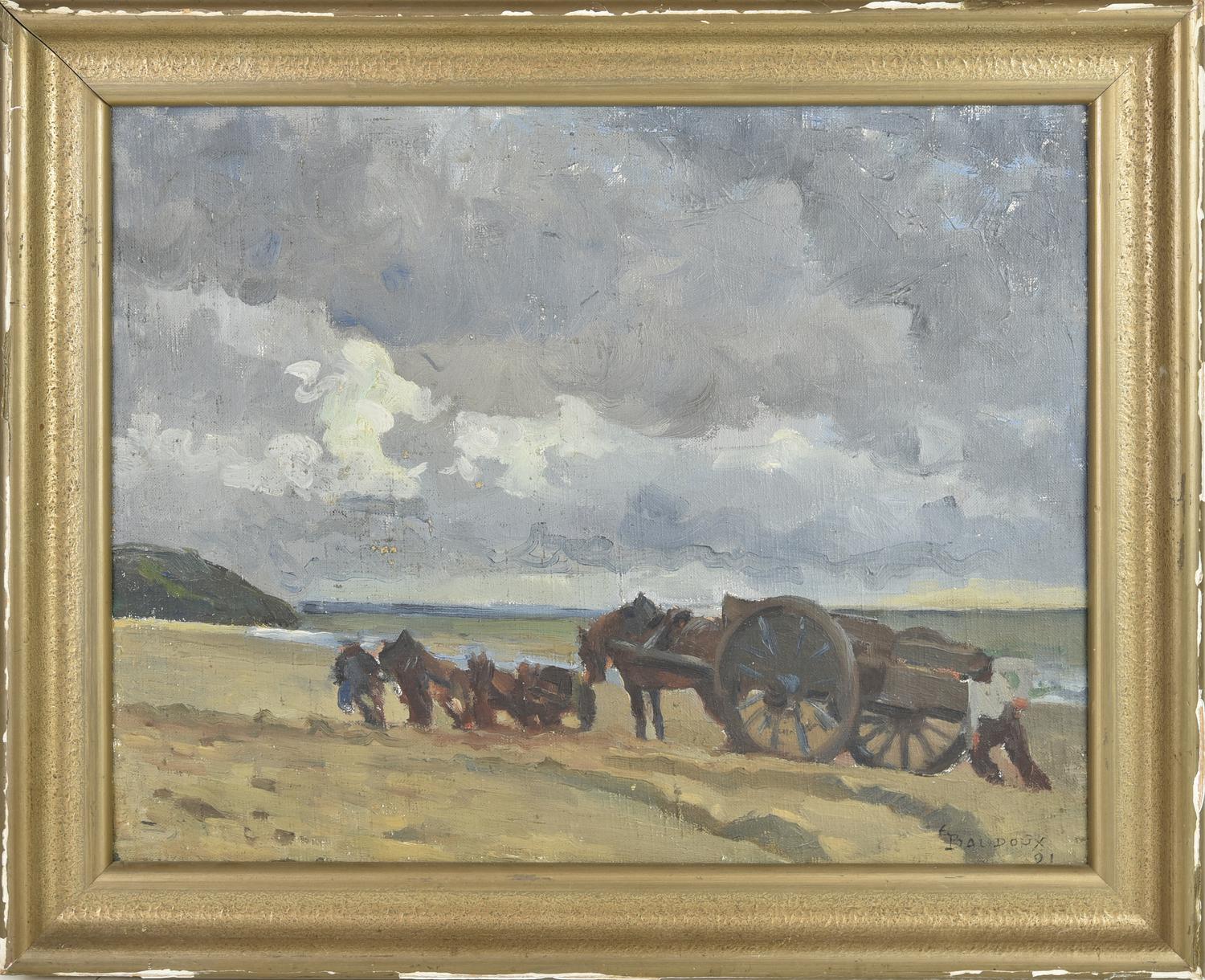 Emile Baudoux CAROVANA, 1891 olio su tela applicata su tavola, cm 33x40 firma...