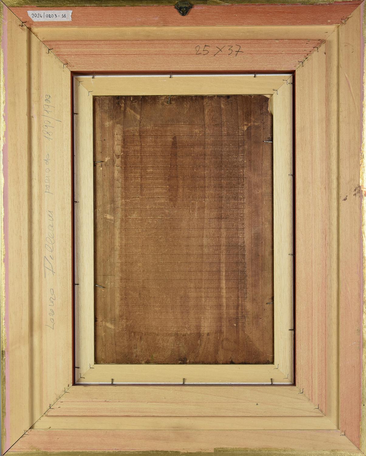 Lorenzo Delleani CASTELLO olio su tavola, cm 37,3x25,1 sigla