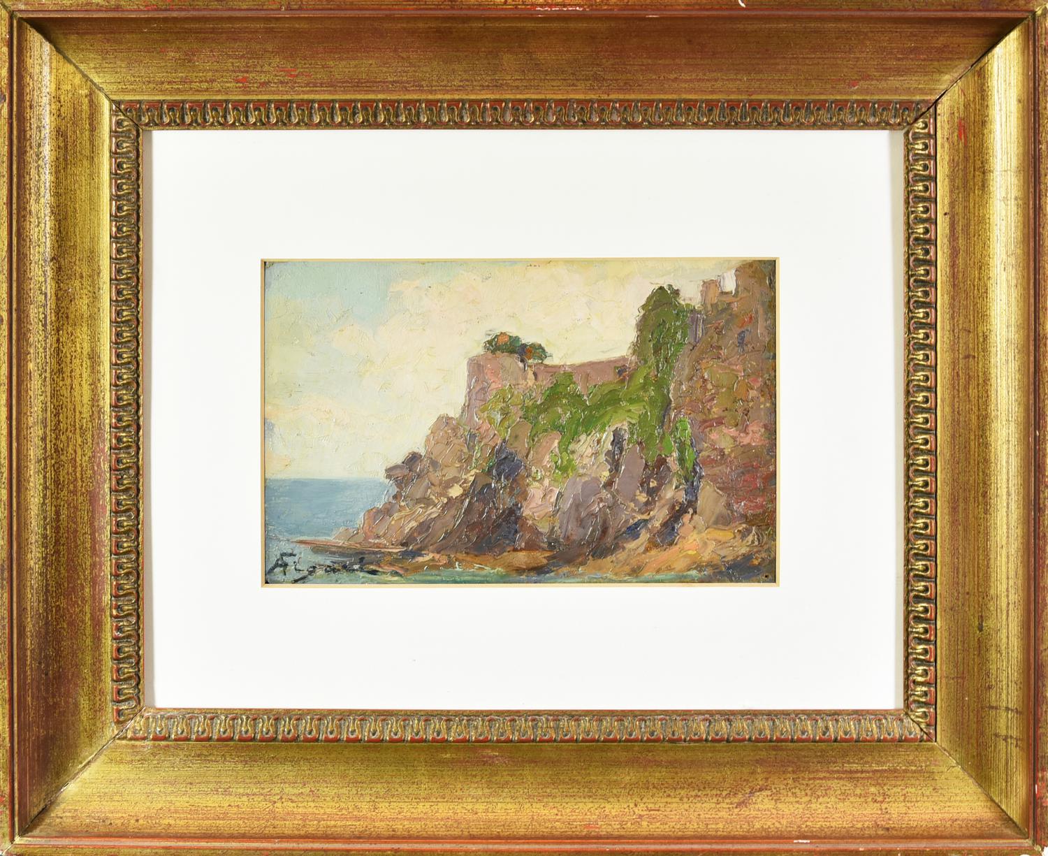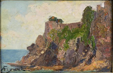 Andrea Figari SCOGLIERA LIGURE olio su tavola, cm 16x24,5 firma