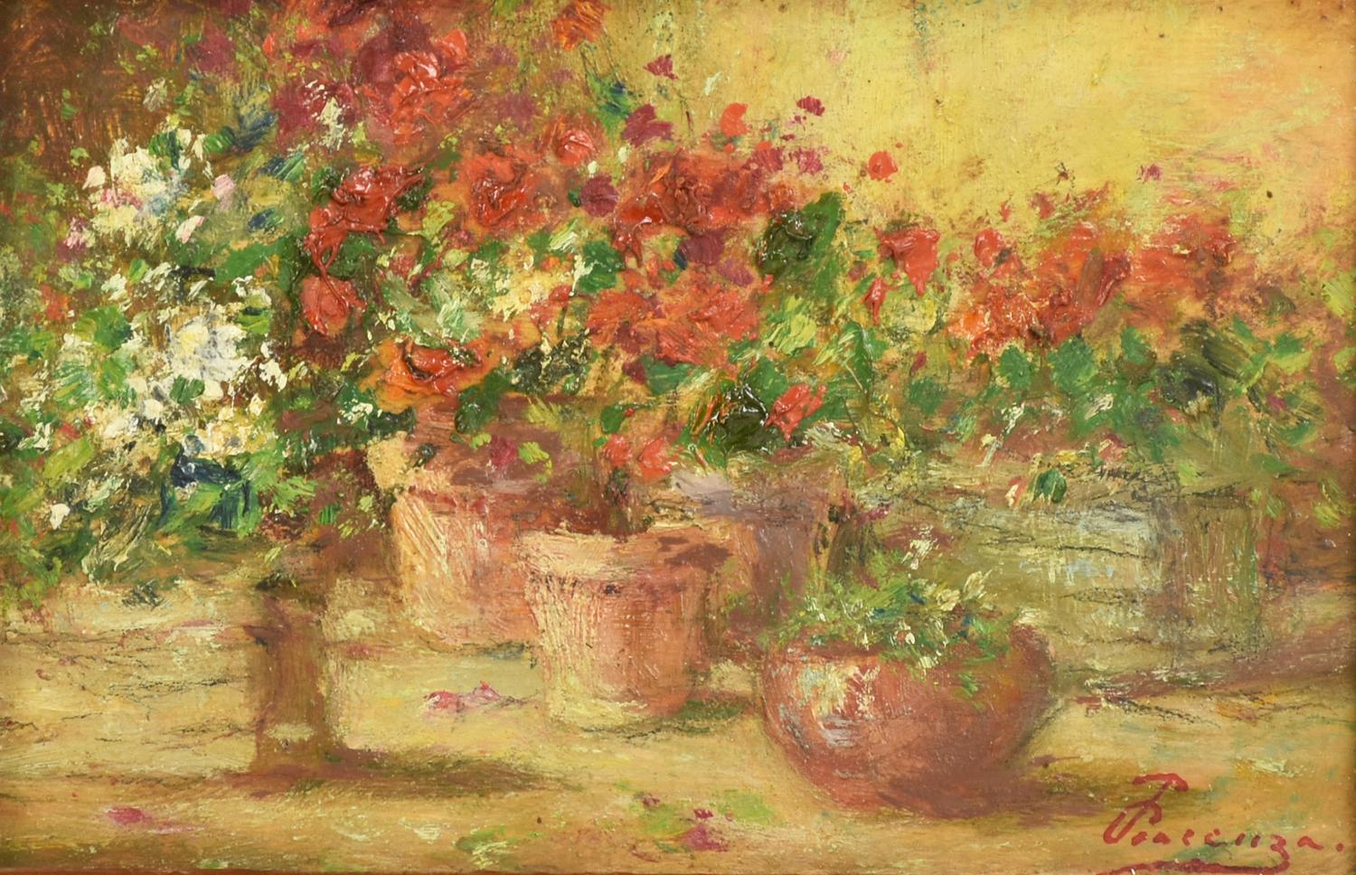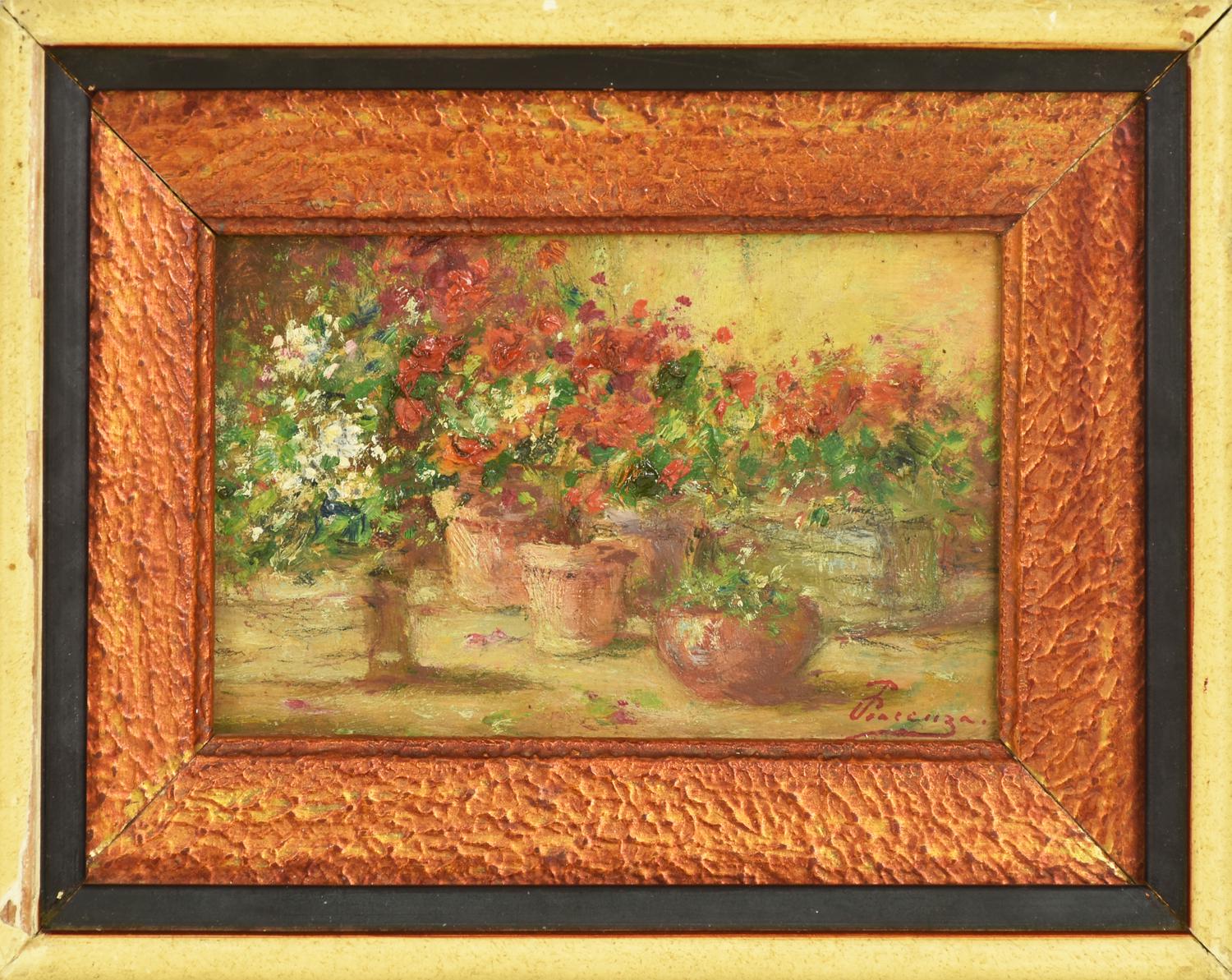 Pietro Piacenza VASI DI FIORI olio su tavola, cm 9x14 firma