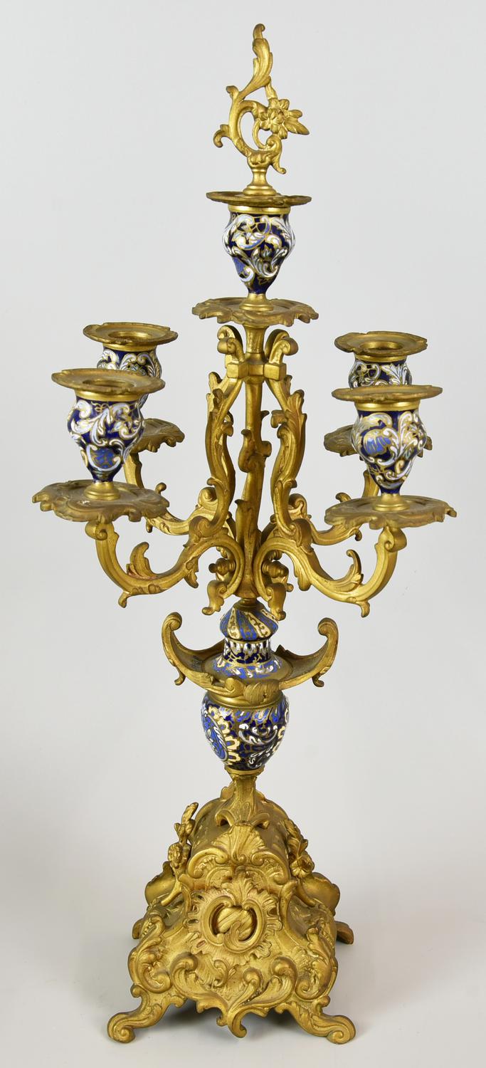 TRITTICO COMPOSTO DA OROLOGIO E DUE CANDELABRI, inizi XX secolo