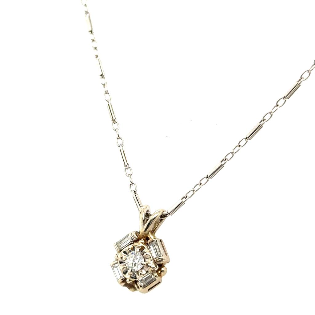 GIROCOLLO IN ORO BIANCO 14K 3.57 GR CON DIAMANTI PER 0.40 CARATI TAGLIO BUGGETTE + DIAMANTI PER 0.15 CARATI TAGLIO BRILLANTE GVS VINTAGE CERTIFICATO AIG - PND30406