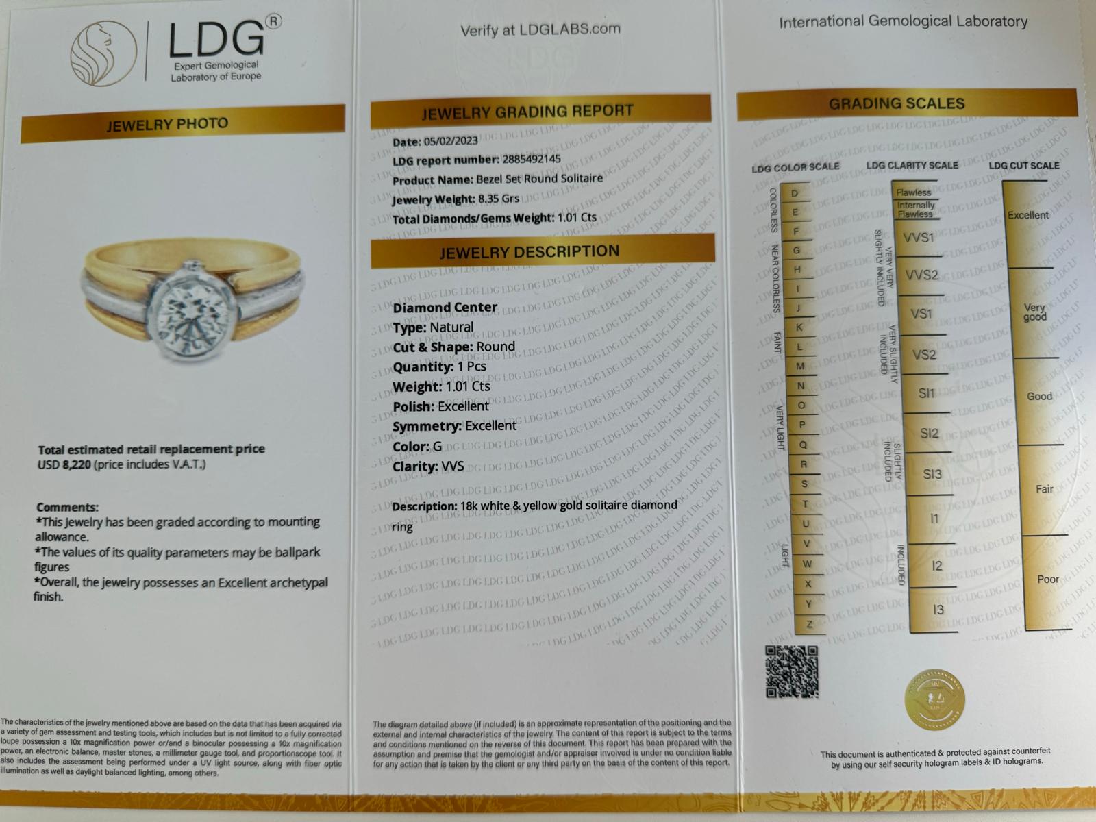 ANELLO IN ORO 18K BIANCO E GIA - NUMERO DI REPORT INCISO SULLA CORANALLO 8.35 GR CON DIAMANTI PER 1.01 CARATI COLORE G PUREZZA VVS TAGLIA 8 CERTIFICATO GEMMOLOGICO MAROZ DIAMONDS LTD MEMBRO ISRAEL DIAMOND EXCHANGE - DH-R1000