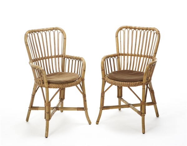 Coppia di sedie in giunco. Italia, anni '50. (cm 52x88x53) (lievi difetti)