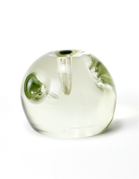 Vaso soliflore in vetro cristallo di forte spessore di forma sferica. Seconda metà secolo XX. (h cm 12)