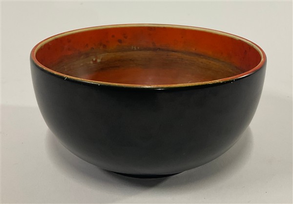 Ciotola in ceramica smaltata nera e arancione. (h cm 7; d cm 14) (difetti)