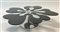 Tavolo basso con piano in vetro incolore e nero opaco a forma di fiore, base in ferro. (cm 134x31x134) (lievi difetti)